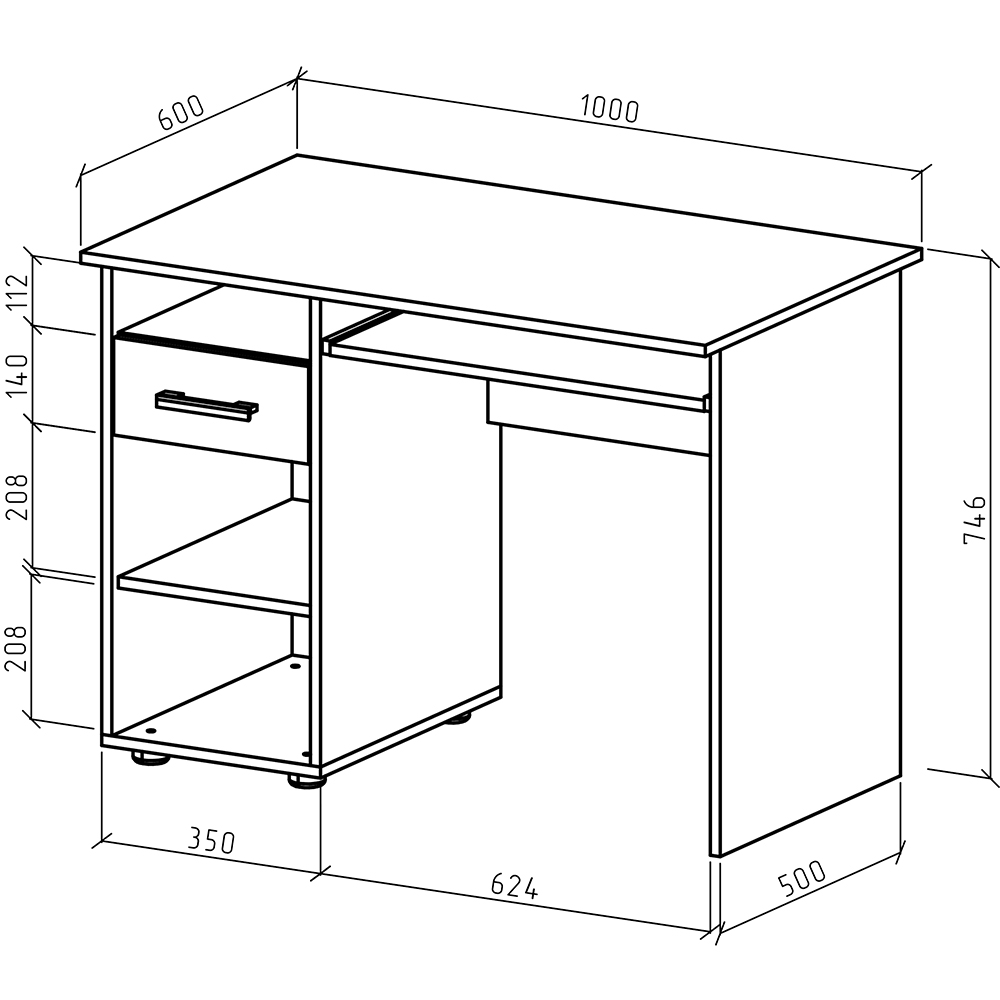 Глубина: 600 мм.