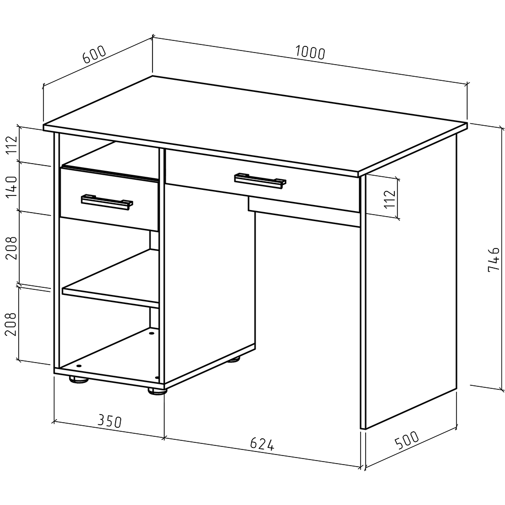 Глубина: 600 мм.