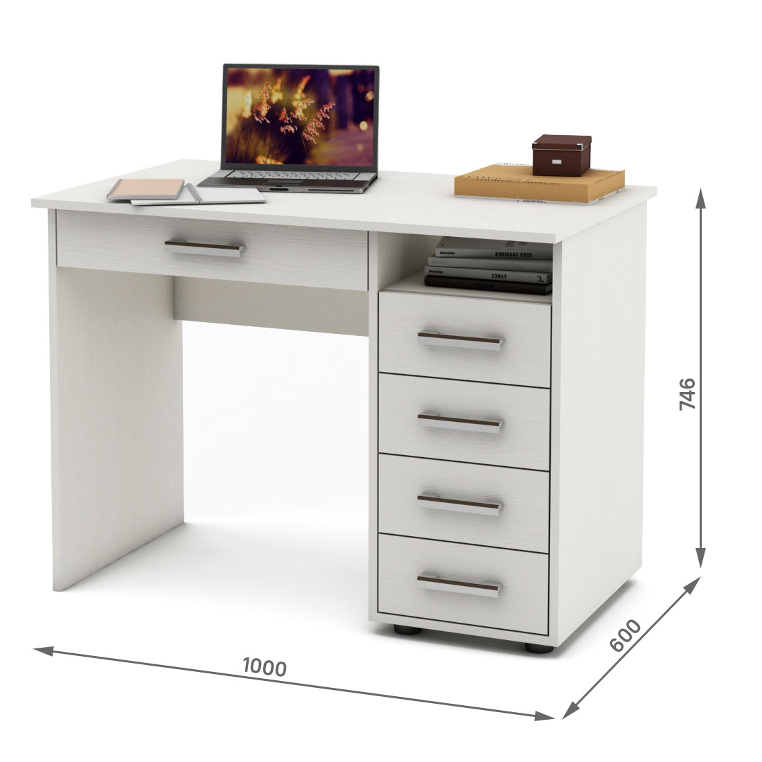 Письменный стол Остин-3Я с 5 просторными ящиками - идеальное решение для организации рабочего пространства. Функциональный, стильный и прочный.