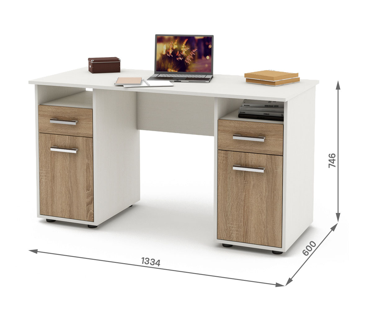 Письменный стол Остин-5 двухтумбовый сочетает в себе удобные ящики и полки для организации и хранения всех ваших канцелярских принадлежностей и документов.