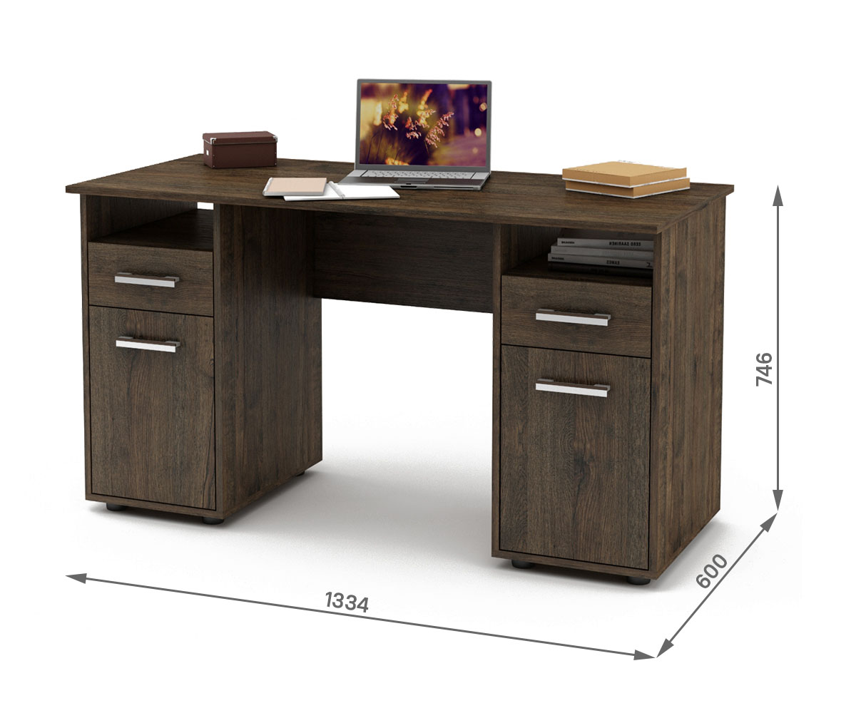 Письменный стол Остин-5 двухтумбовый сочетает в себе удобные ящики и полки для организации и хранения всех ваших канцелярских принадлежностей и документов.