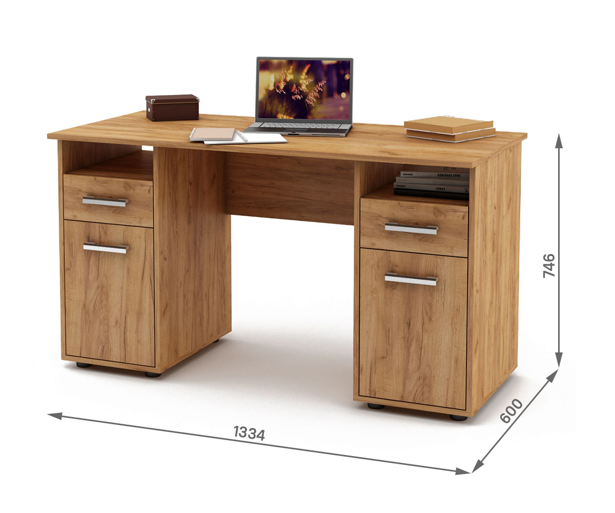 Письменный стол Остин-5 двухтумбовый сочетает в себе удобные ящики и полки для организации и хранения всех ваших канцелярских принадлежностей и документов.
