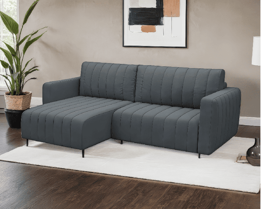 Благодаря выдвигаемой вперед передней секции, угловой диван можно поставить вплотную к стене, не беспокоясь о повреждении напольного покрытия при трансформировании.