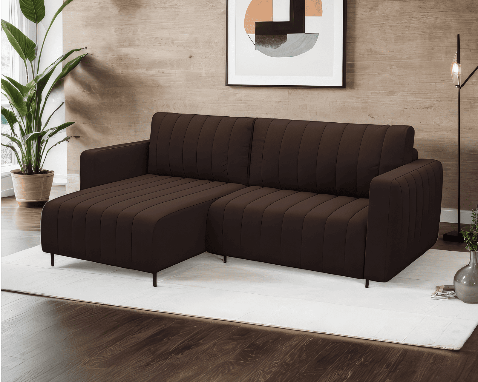 Удобство использования дивана «Флорент» дополняется ящиком для хранения, который расположен внутри угловой части. В него можно положить небольшие вещи или постельные принадлежности, сохраняя порядок и экономя пространство.