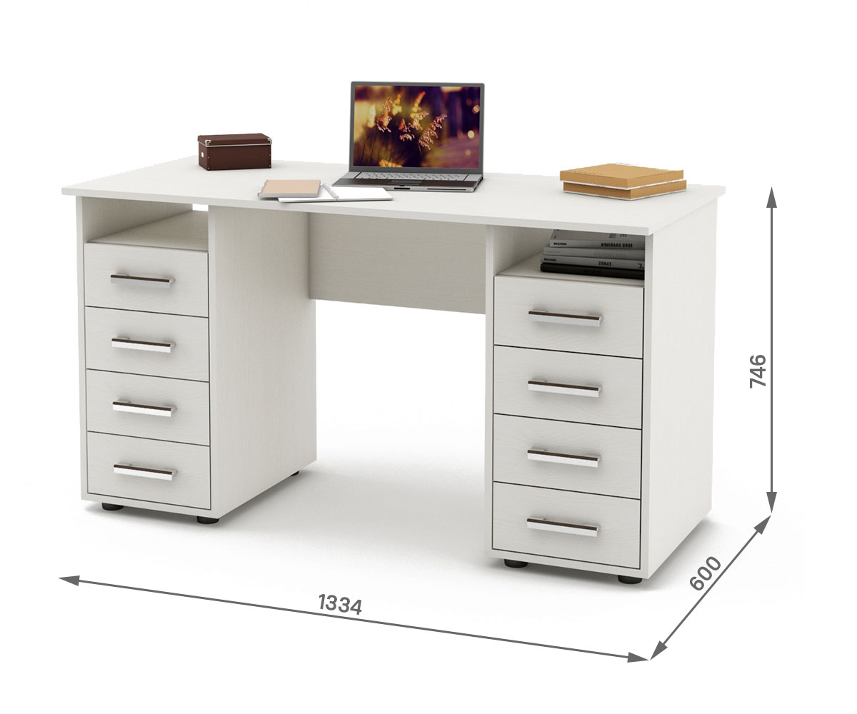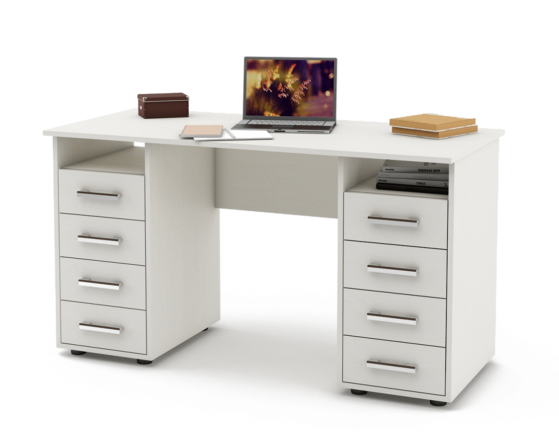 Письменный стол Остин-6 двухтумбовый предлагает не только 8 ящиков для удобного хранения, но также полки для легкого доступа к книгам и документам.