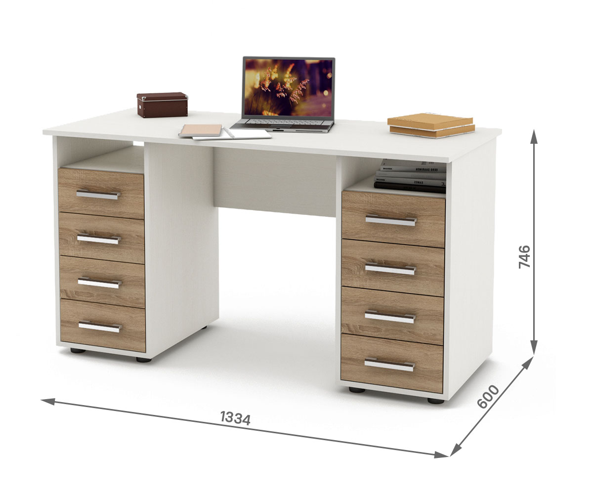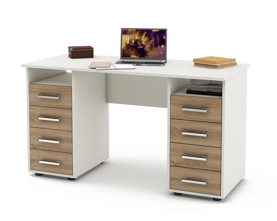 Письменный стол Остин-6 двухтумбовый предлагает не только 8 ящиков для удобного хранения, но также полки для легкого доступа к книгам и документам.
