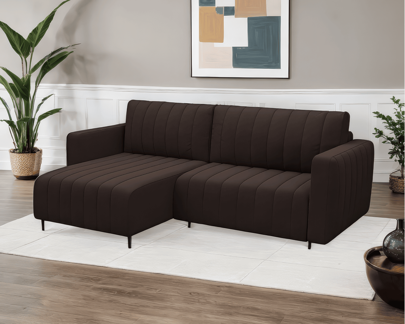Благодаря выдвигаемой вперед передней секции, угловой диван можно поставить вплотную к стене, не беспокоясь о повреждении напольного покрытия при трансформировании.