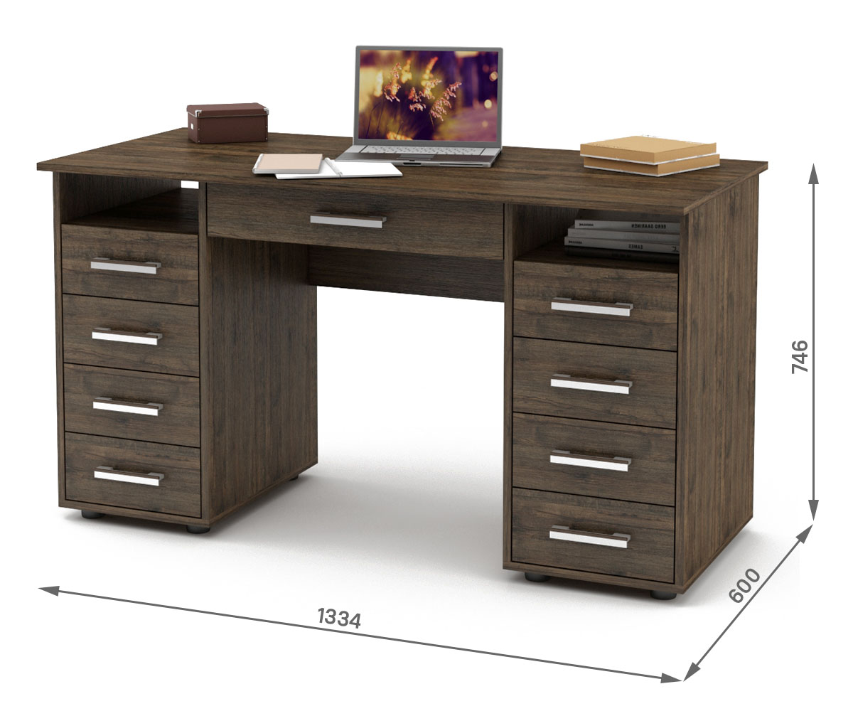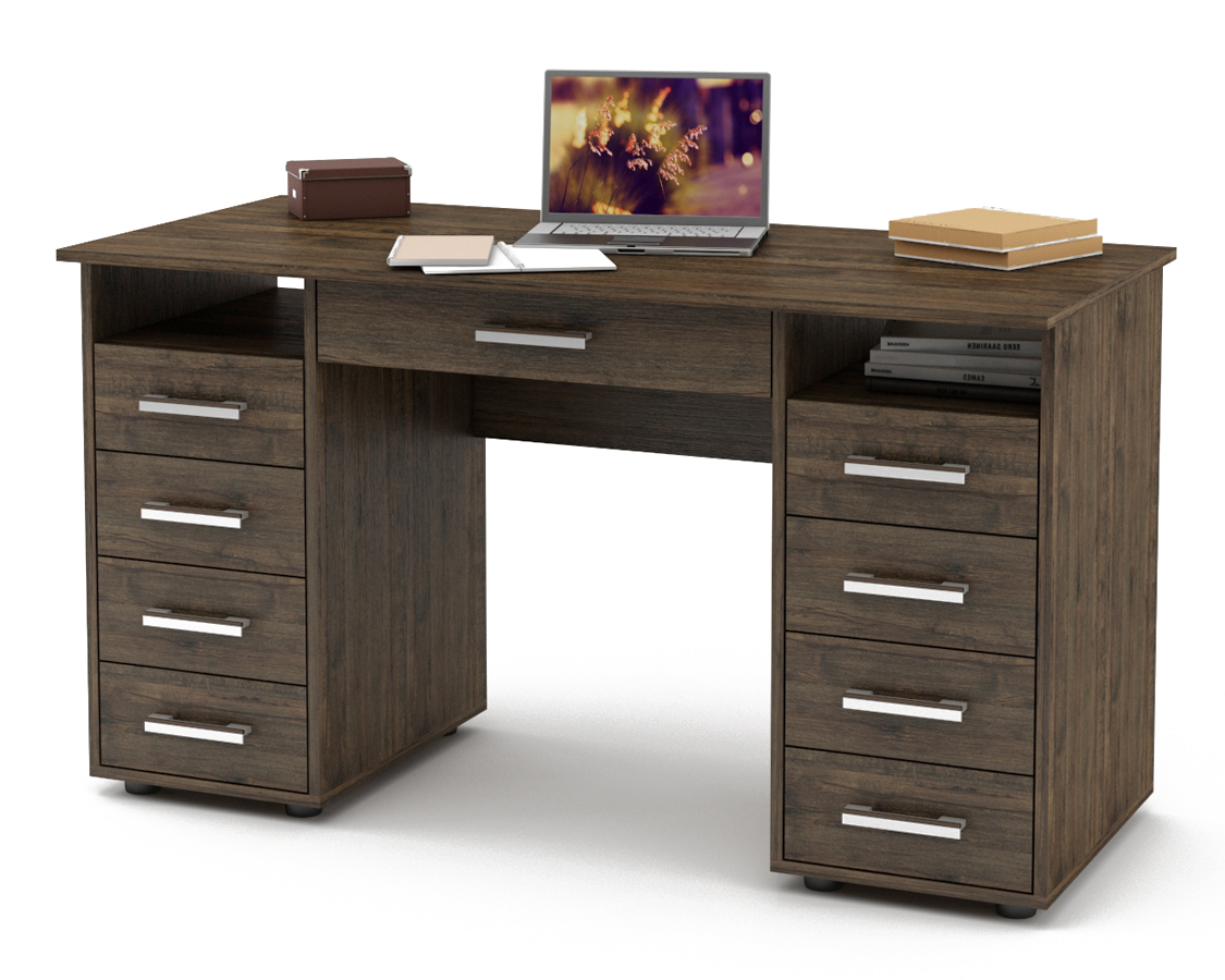 Письменный стол Остин-6Я двухтумбовый предлагает не только 9 ящиков для удобного хранения, но также полки для легкого доступа к книгам и документам.