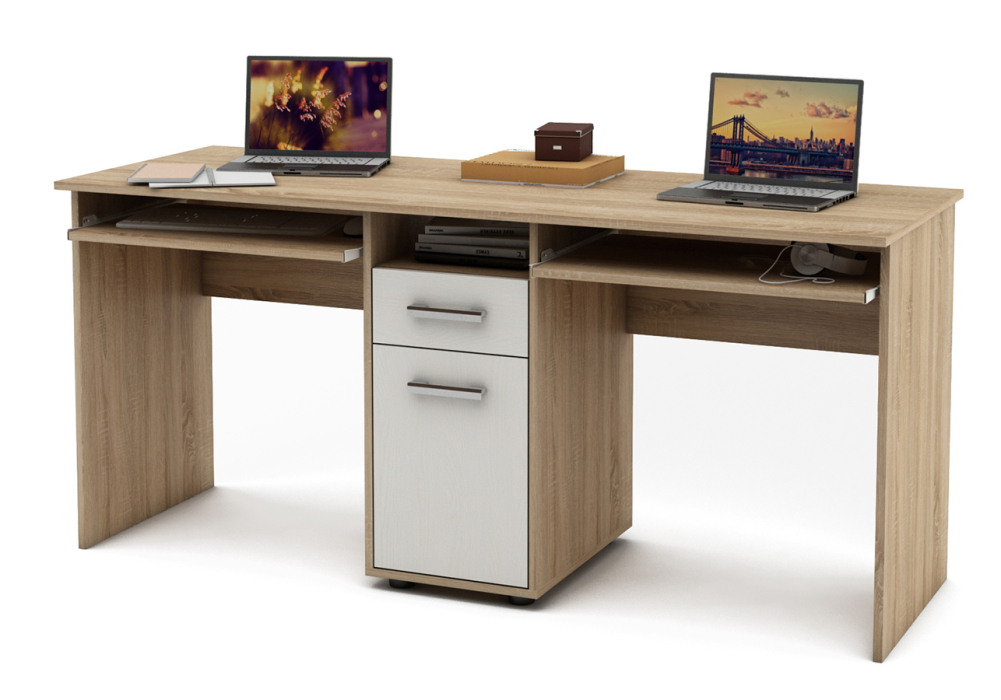 Этот просторный письменный стол Остин-7К с ящиком и полкой под клавиатуру идеально подойдет для двоих человек, обеспечивая удобное хранение и работу.