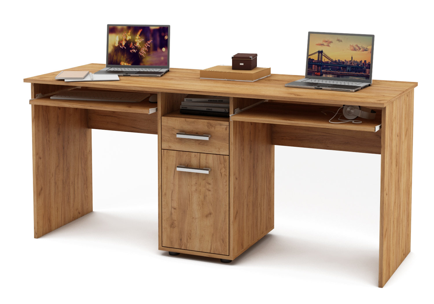 Этот просторный письменный стол Остин-7К с ящиком и полкой под клавиатуру идеально подойдет для двоих человек, обеспечивая удобное хранение и работу.