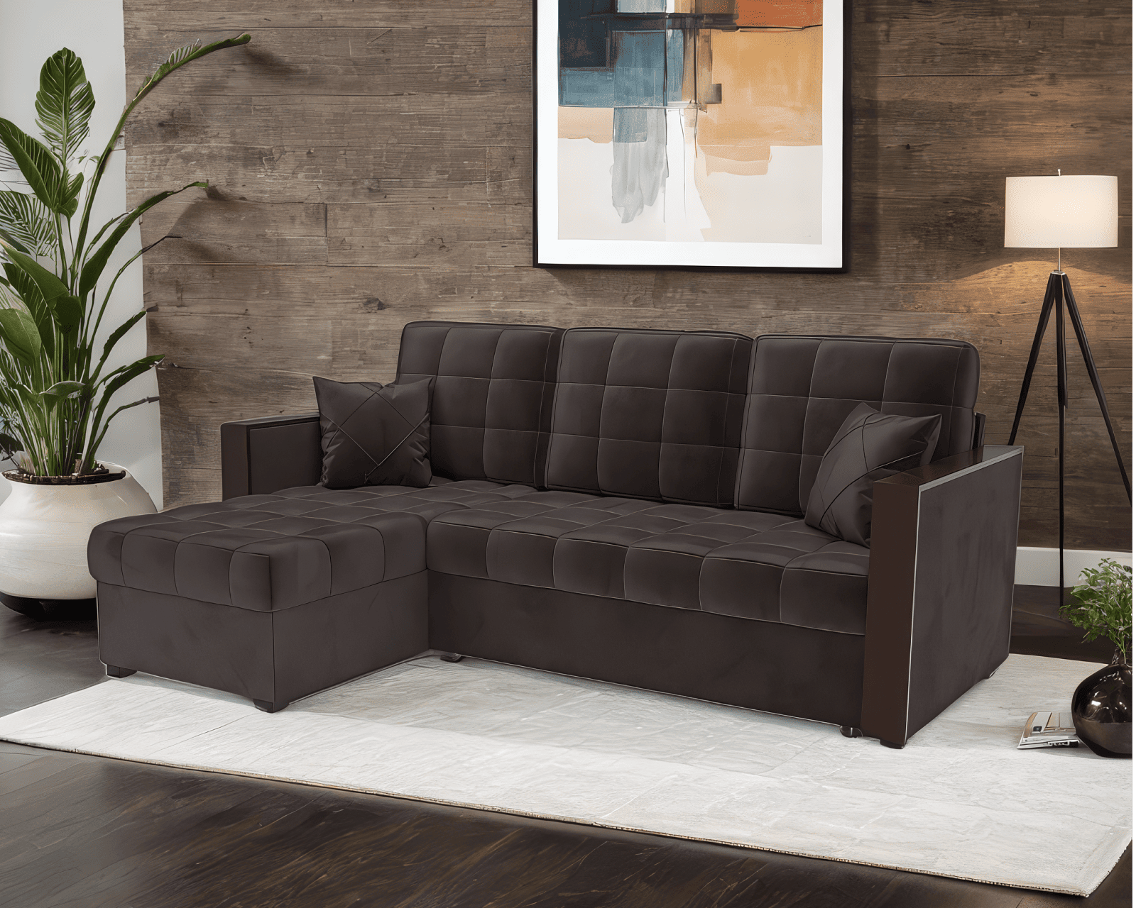Удобство использования дивана «Техас» дополняется ящиком для хранения, который расположен внутри угловой части. В него можно положить небольшие вещи или постельные принадлежности, сохраняя порядок и экономя пространство.
