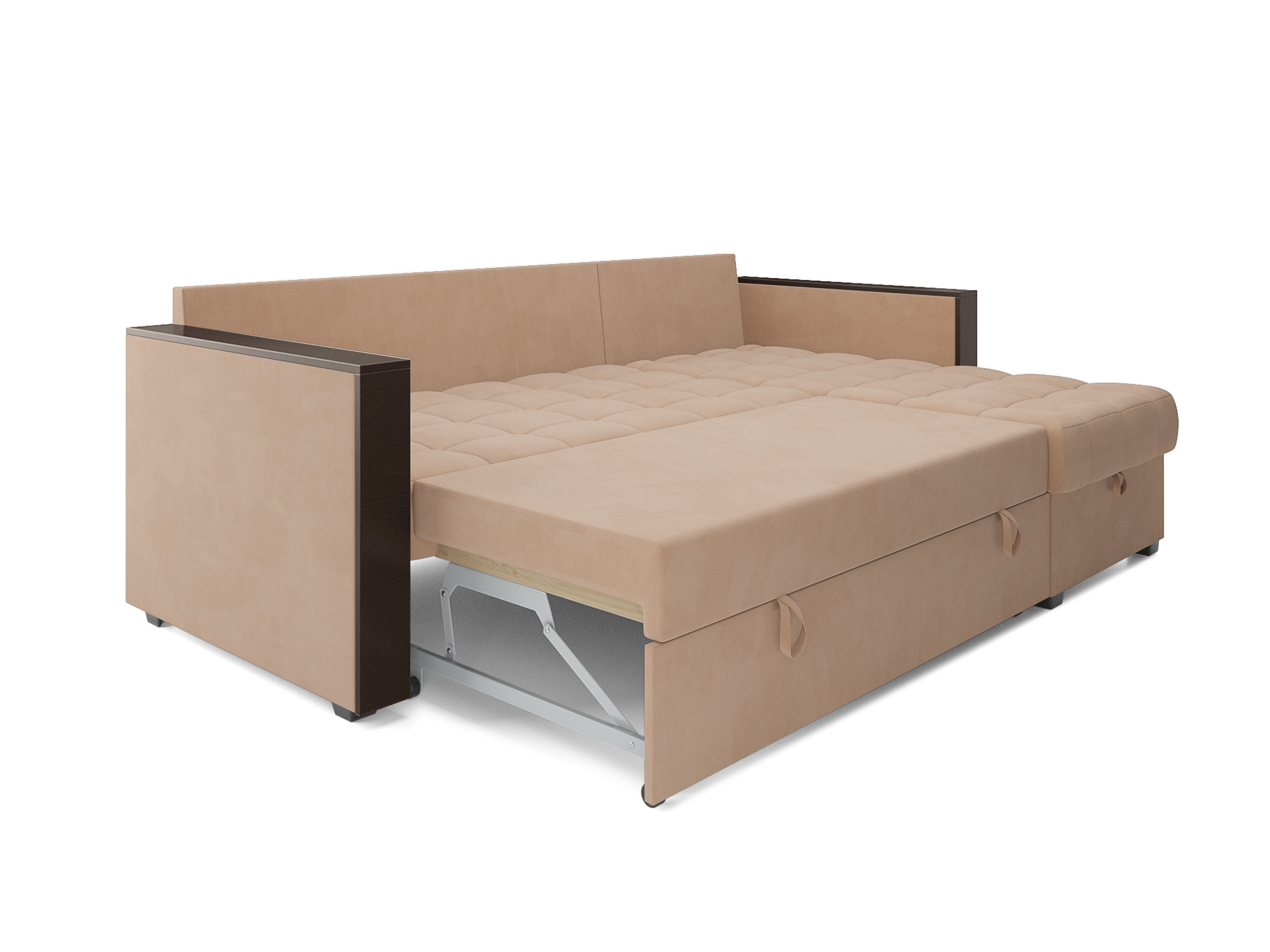 Если ваши друзья решат остаться на ночь, разобрать угловой диван «Техас» не составит труда. Благодаря механизму «дельфин», процесс трансформации в комфортную кровать происходит легко и быстро. Просто потяните за ремешок и поднимите наружу скрытую часть дивана, и теперь у вас есть дополнительное спальное место.