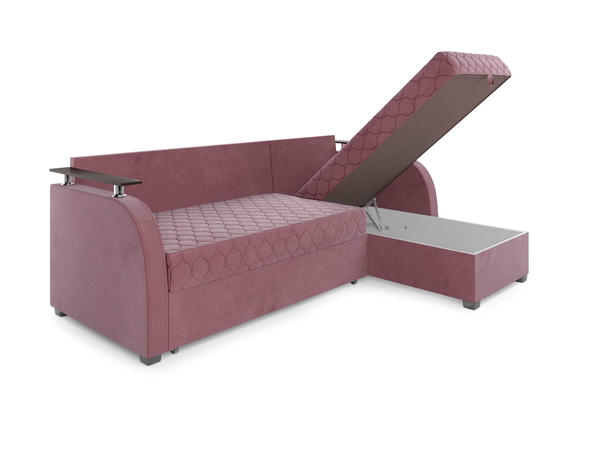 Удобство использования дивана «Токио» дополняется ящиком для хранения, который расположен внутри угловой части. В него можно положить небольшие вещи или постельные принадлежности, сохраняя порядок и экономя пространство.