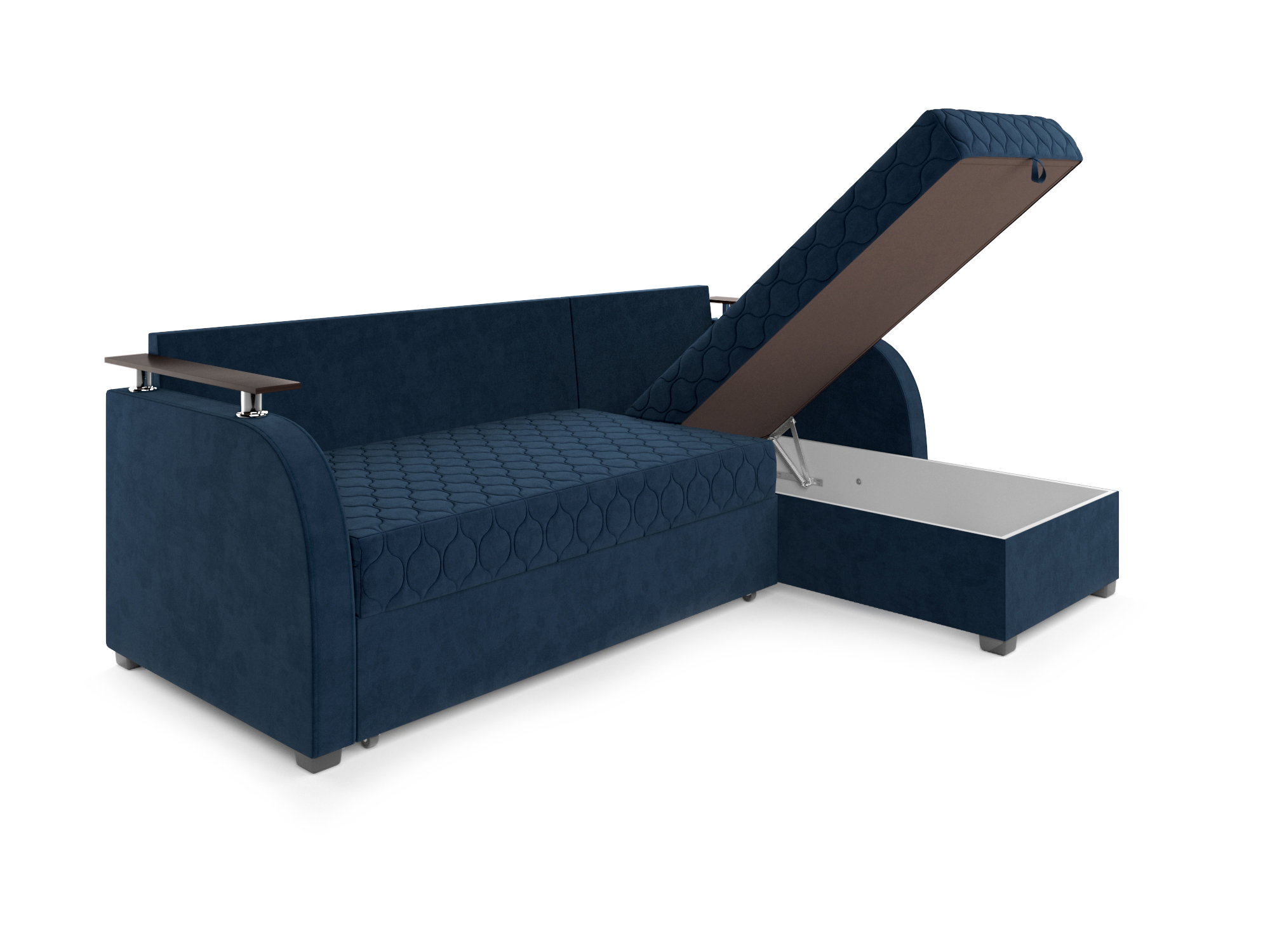 Удобство использования дивана «Токио» дополняется ящиком для хранения, который расположен внутри угловой части. В него можно положить небольшие вещи или постельные принадлежности, сохраняя порядок и экономя пространство.