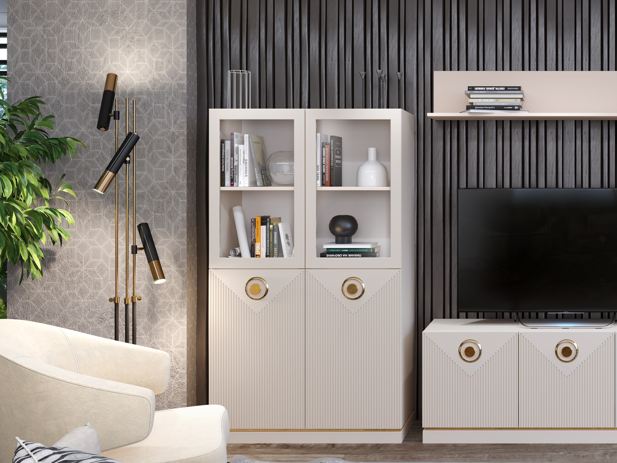 Шкаф витрина со стеклом низкая 90х42х15 бежевая Капри Кураж - это стильное и функциональное решение для хранения книг, посуды и других предметов. Изготовленный в России, этот шкаф отличается высоким качеством и продуманной конструкцией.