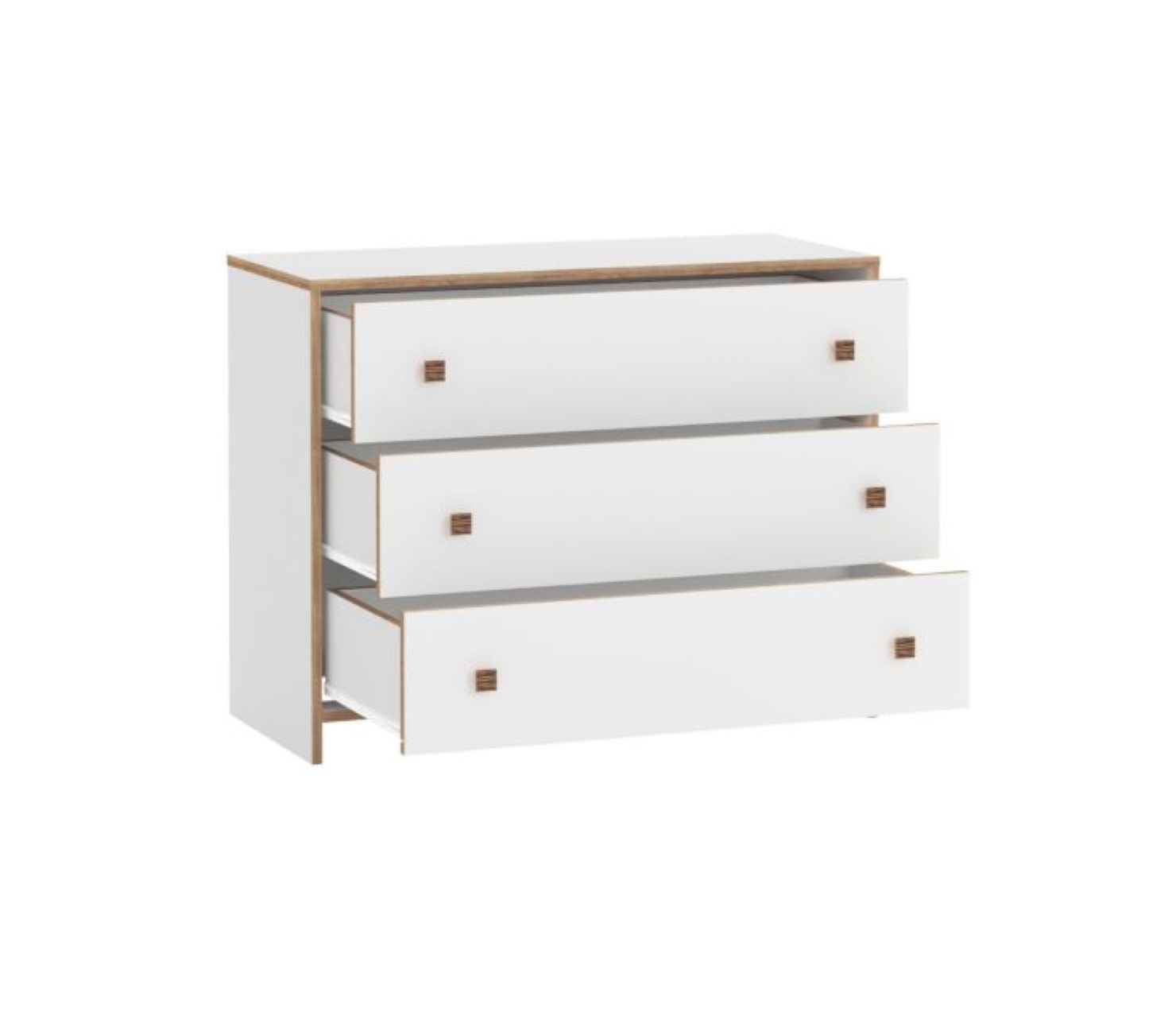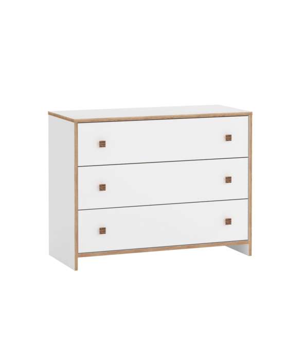 Комод из серии Дакота имеет три выдвижных и вместительных ящика.