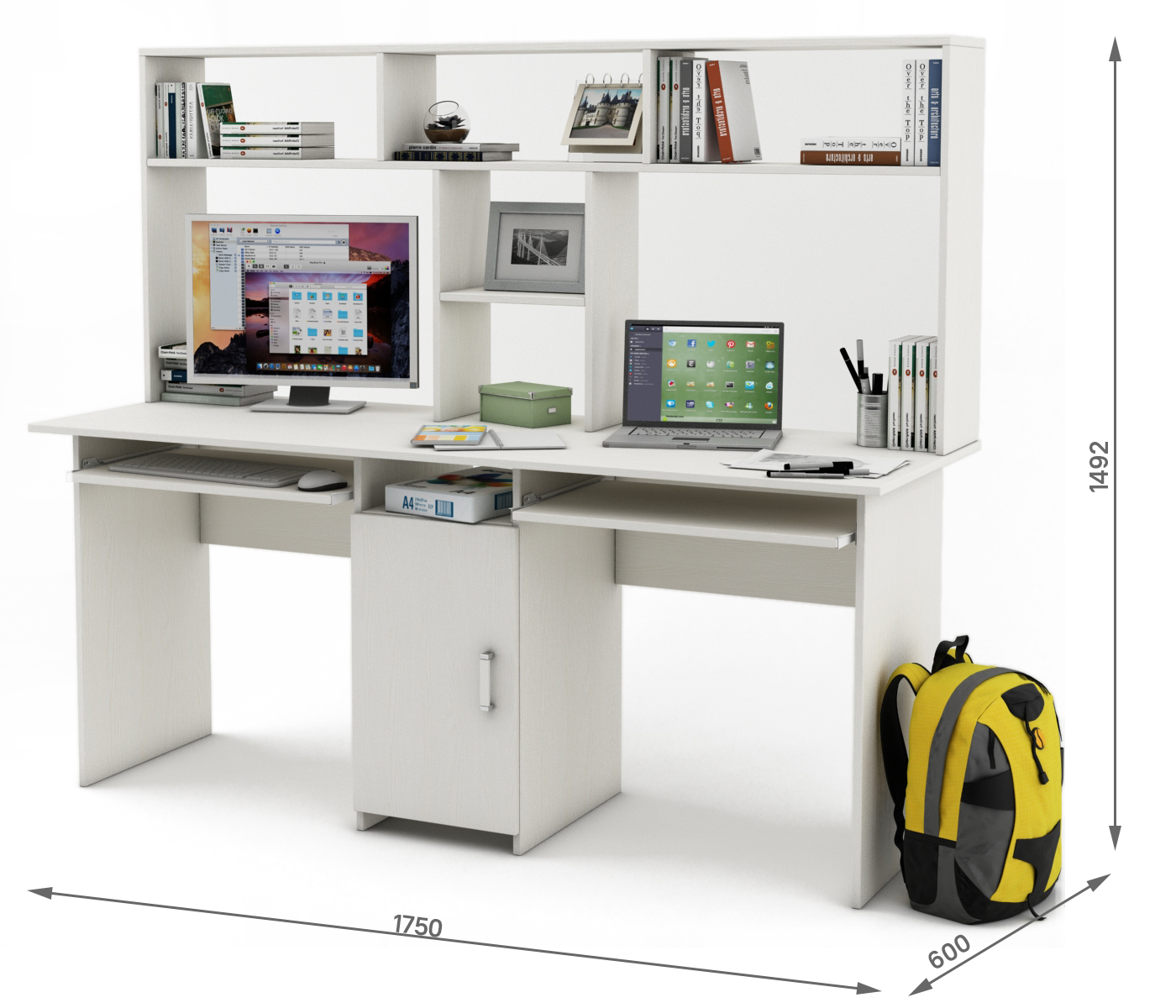 Письменный стол для двоих Лайт-10К с надстройкой и полкой для клавиатуры - удобное и эргономичное рабочее место, идеально подходит для совместной работы и организации рабочего пространства.