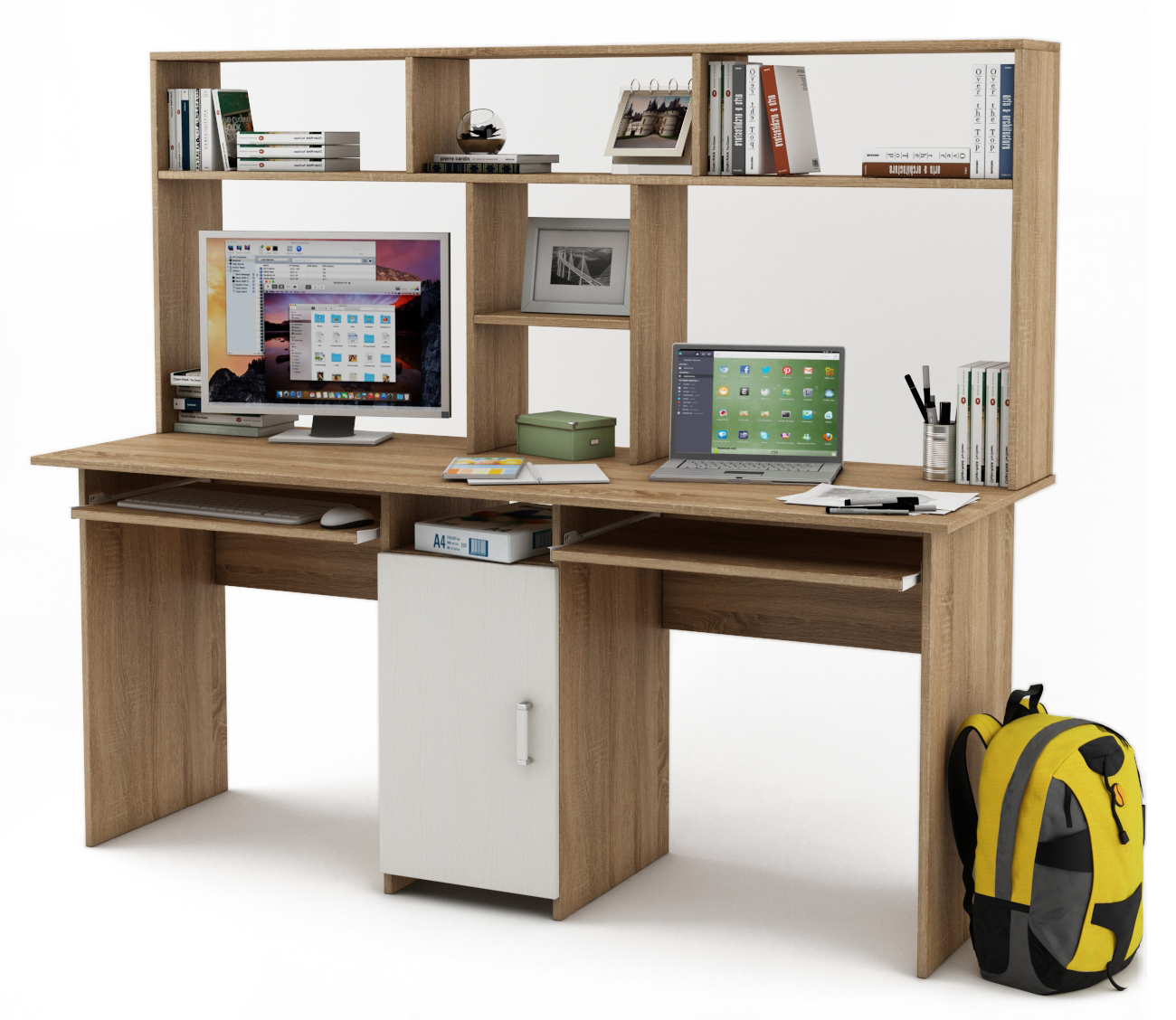 Письменный стол Лайт-10К с надстройкой (Дуб сонома/белый)