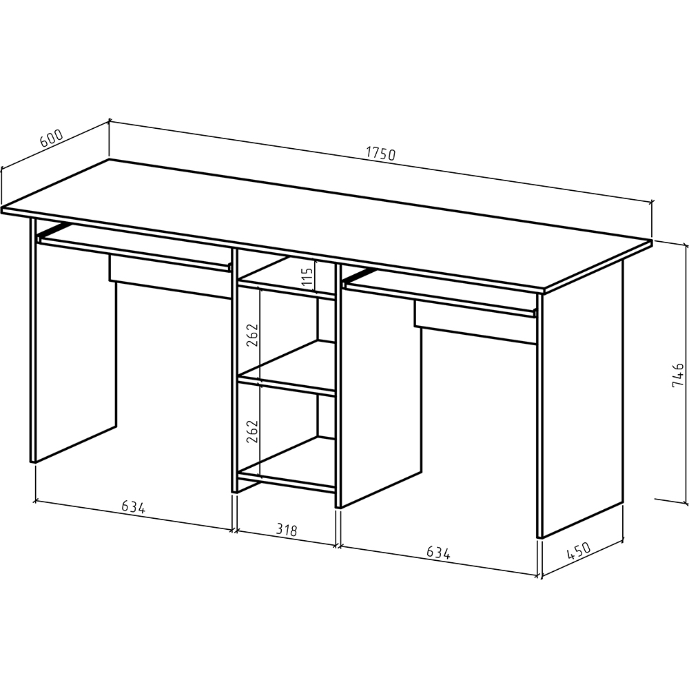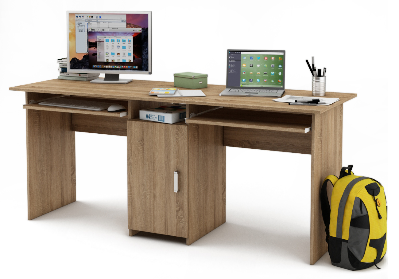 Письменный стол для двоих Лайт-10К с удобной полкой для клавиатуры, идеально подходит для совместной работы или учебы. Он имеет стильный дизайн, прочную конструкцию и достаточно пространства для хранения вещей.