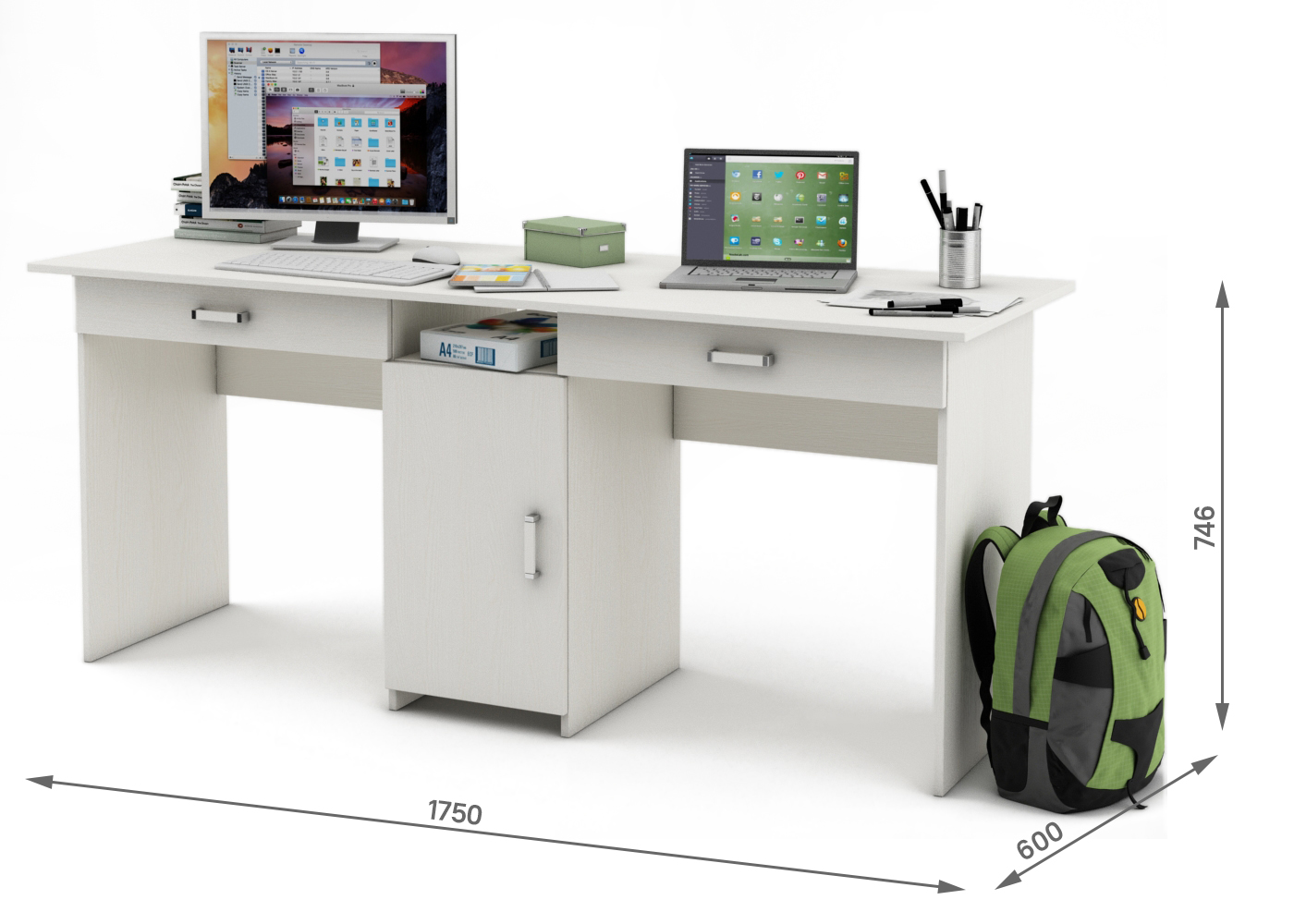 Письменный стол для двоих Лайт-10Я с ящиками - прекрасное решение для пары, обеспечивающее комфорт и функциональность. Он имеет удобные ящики для хранения и стильный дизайн.