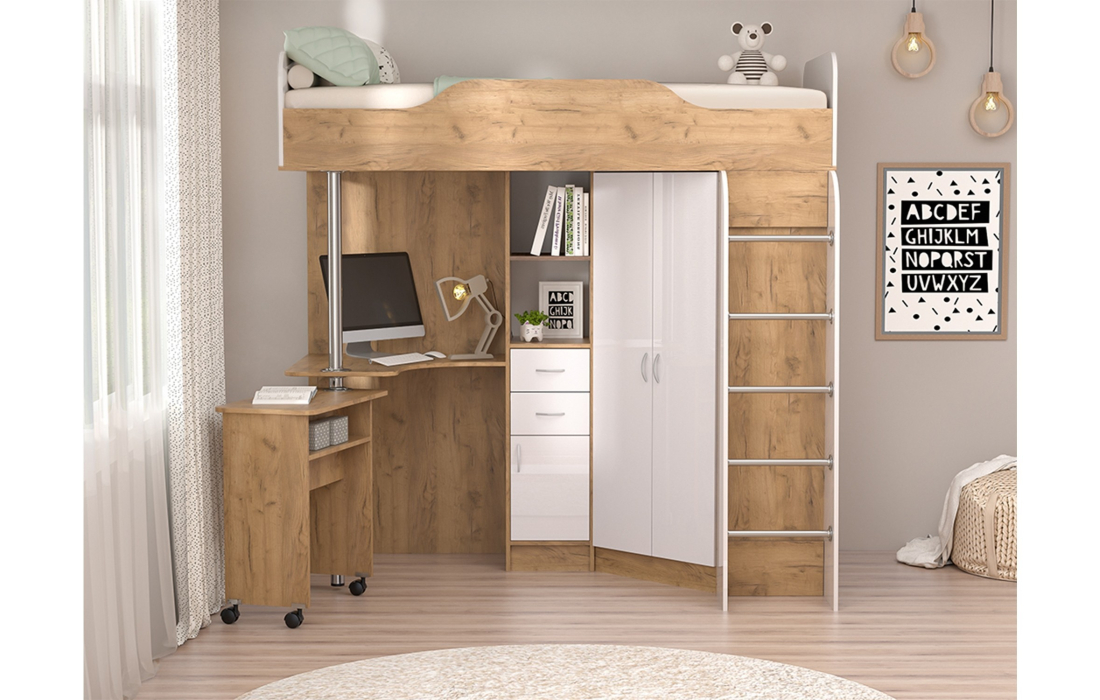 Отзывы о Столплит Кровать-чердак Бриз-1 80х190 правая/левая (Белый глянец) Дуб крафт золотой
