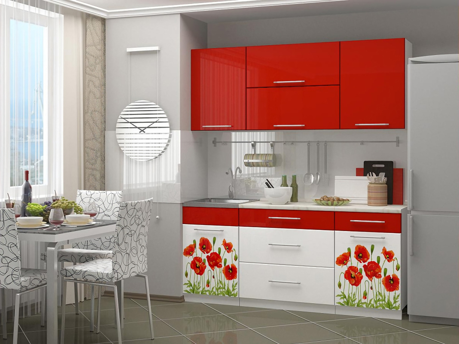 Кухня МДФ 1800 с фотопечатью Маки красные Код I0000388977