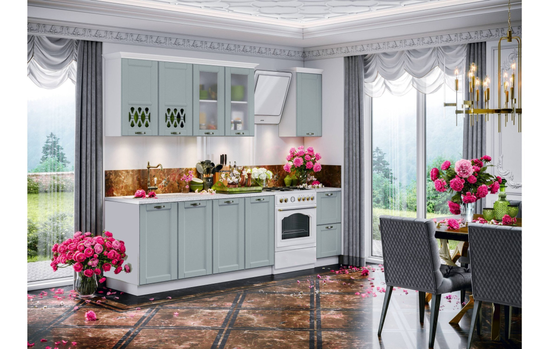 Кухня МДФ 2000 Милано Компоновка №2 (Белый/Голубой) Код I0000388988