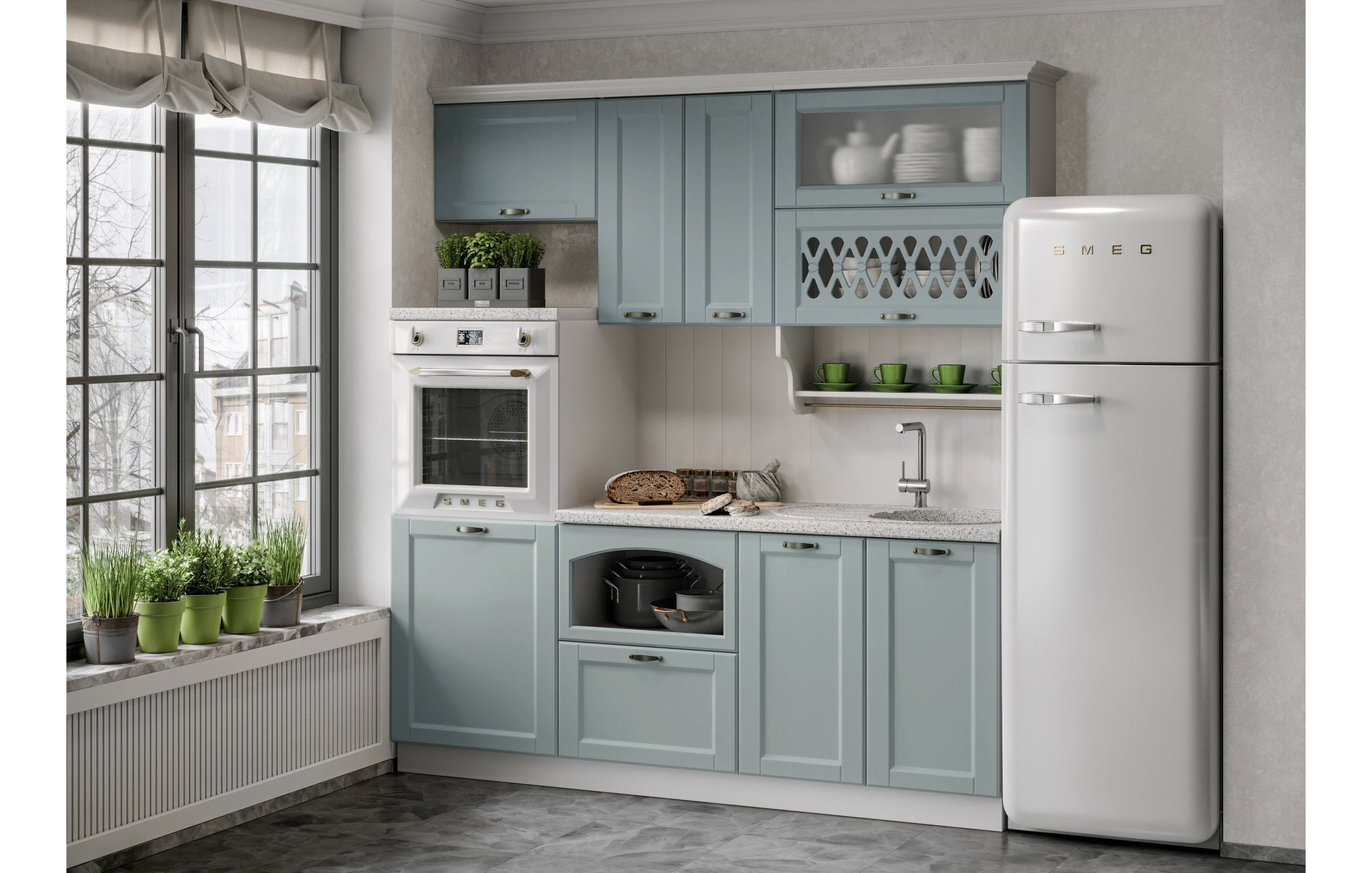 Отзывы о Столплит Кухня МДФ 2000 Милано Компоновка №3 Белый/Голубой