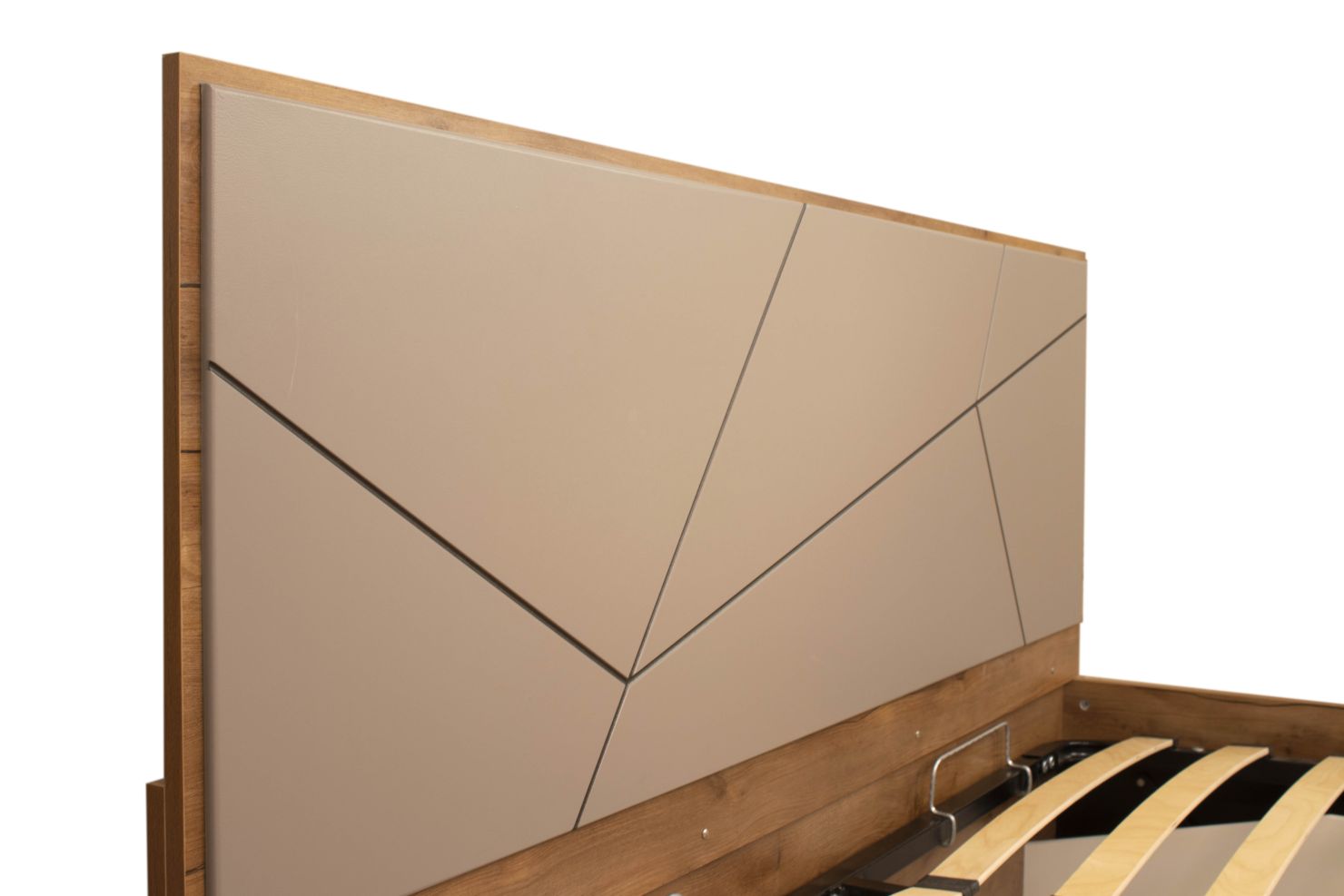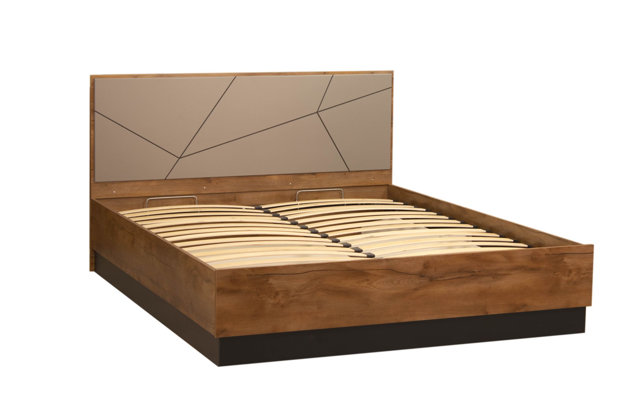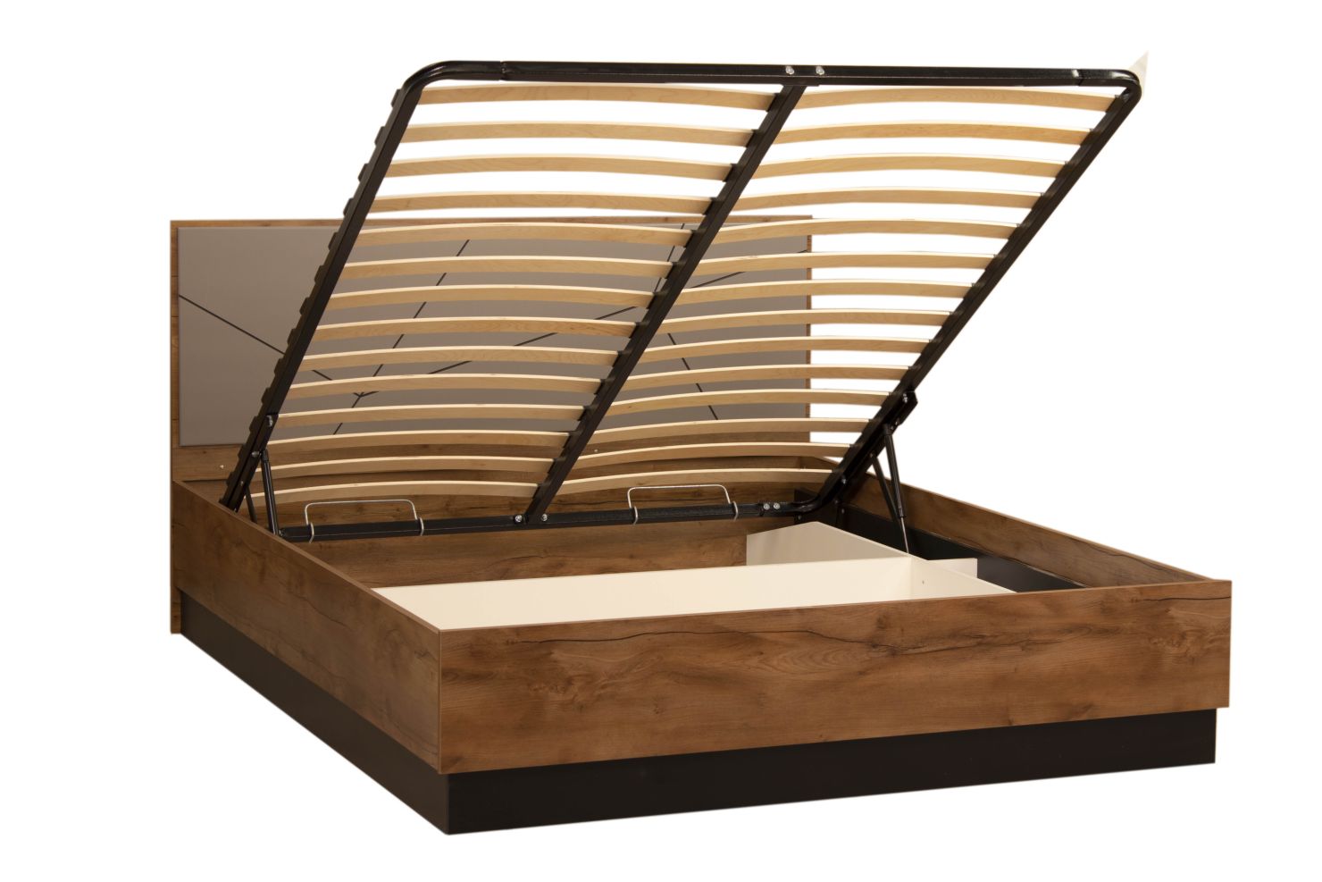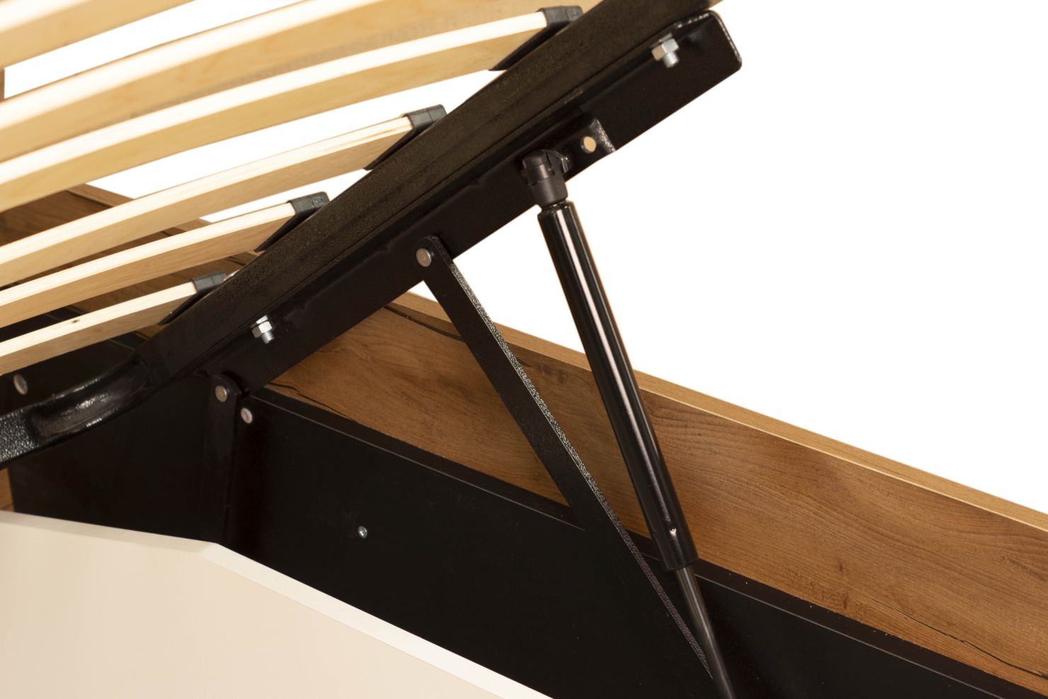 Конструкция с ортопедическим основанием с подъемным механизмом из металла и деревянных ламелей.