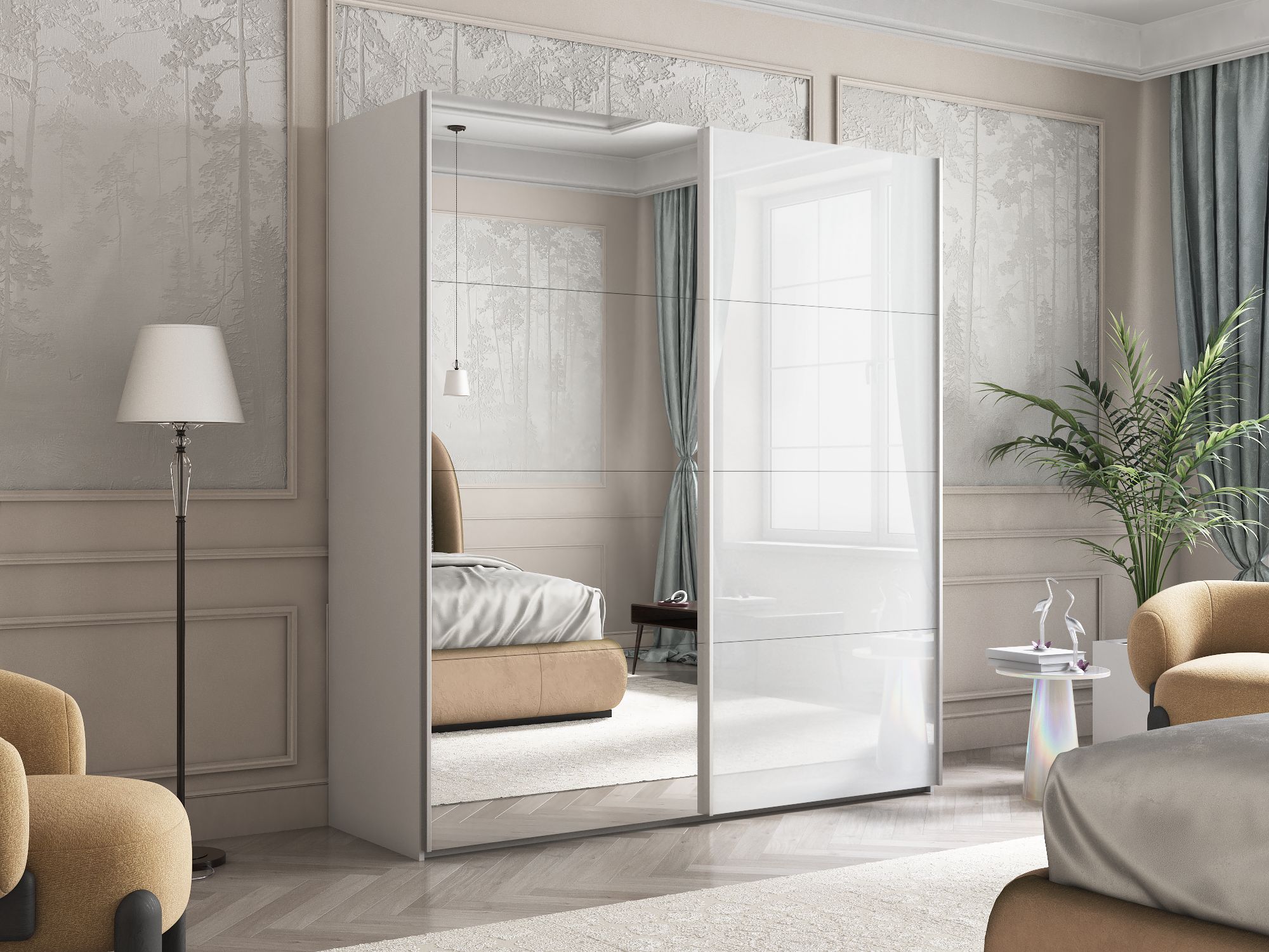 Шкаф Эста дуо Стекло белое/зеркало 2400 х 2000 х 660 (Белый снег)