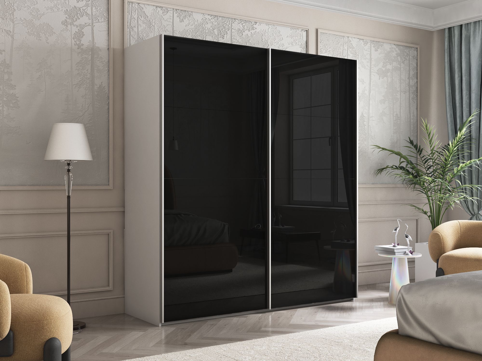 Отзывы о Столплит Шкаф Эста дуо Стекло черное 2400 х 2000 х 660 Белый снег