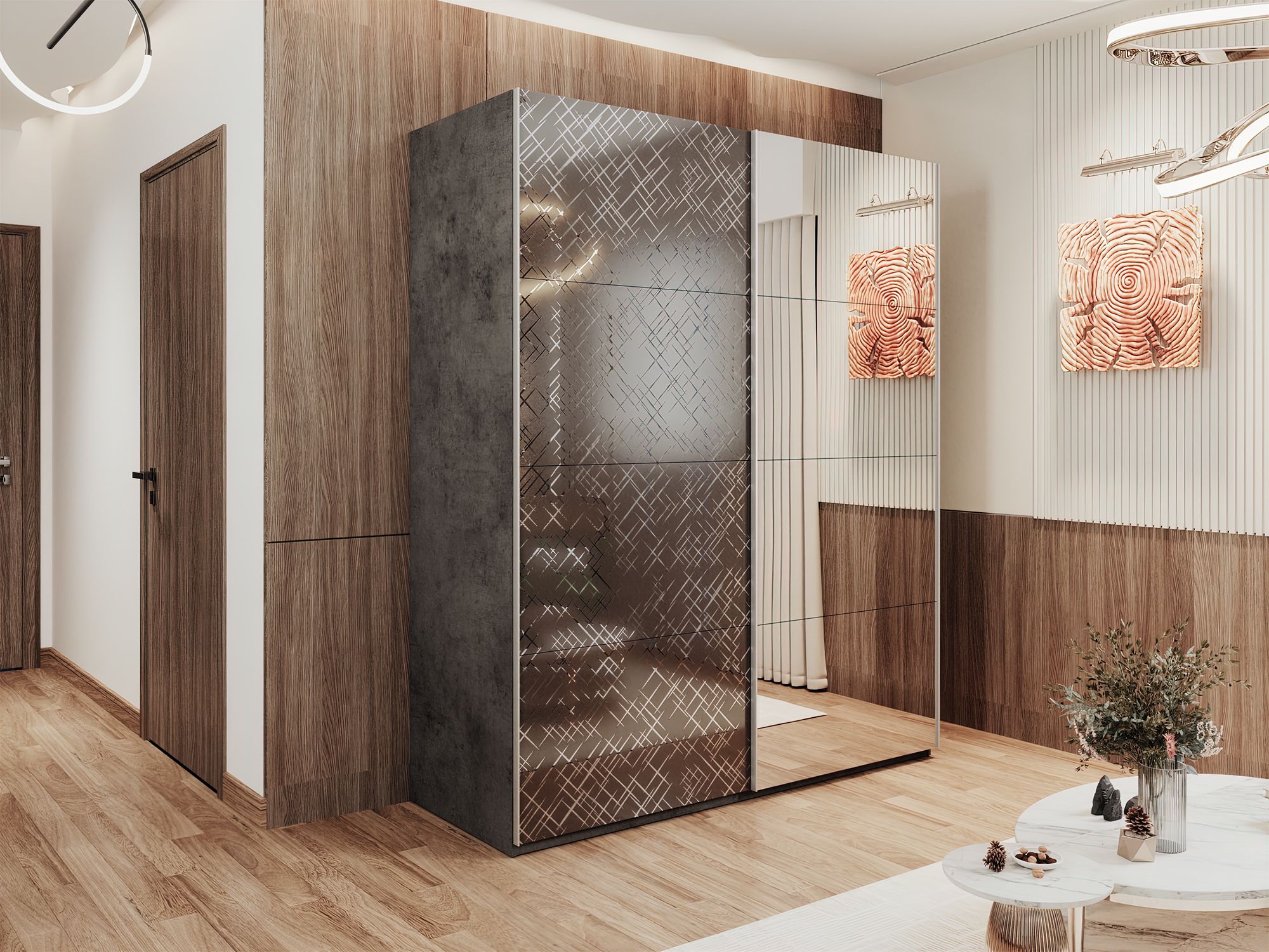 Отзывы о Столплит Шкаф-купе Эста 2-х дверный Медиум (4 Зеркала / 4 Стекла Лабиринт бронза) 2200х1800х660 Бетон серый