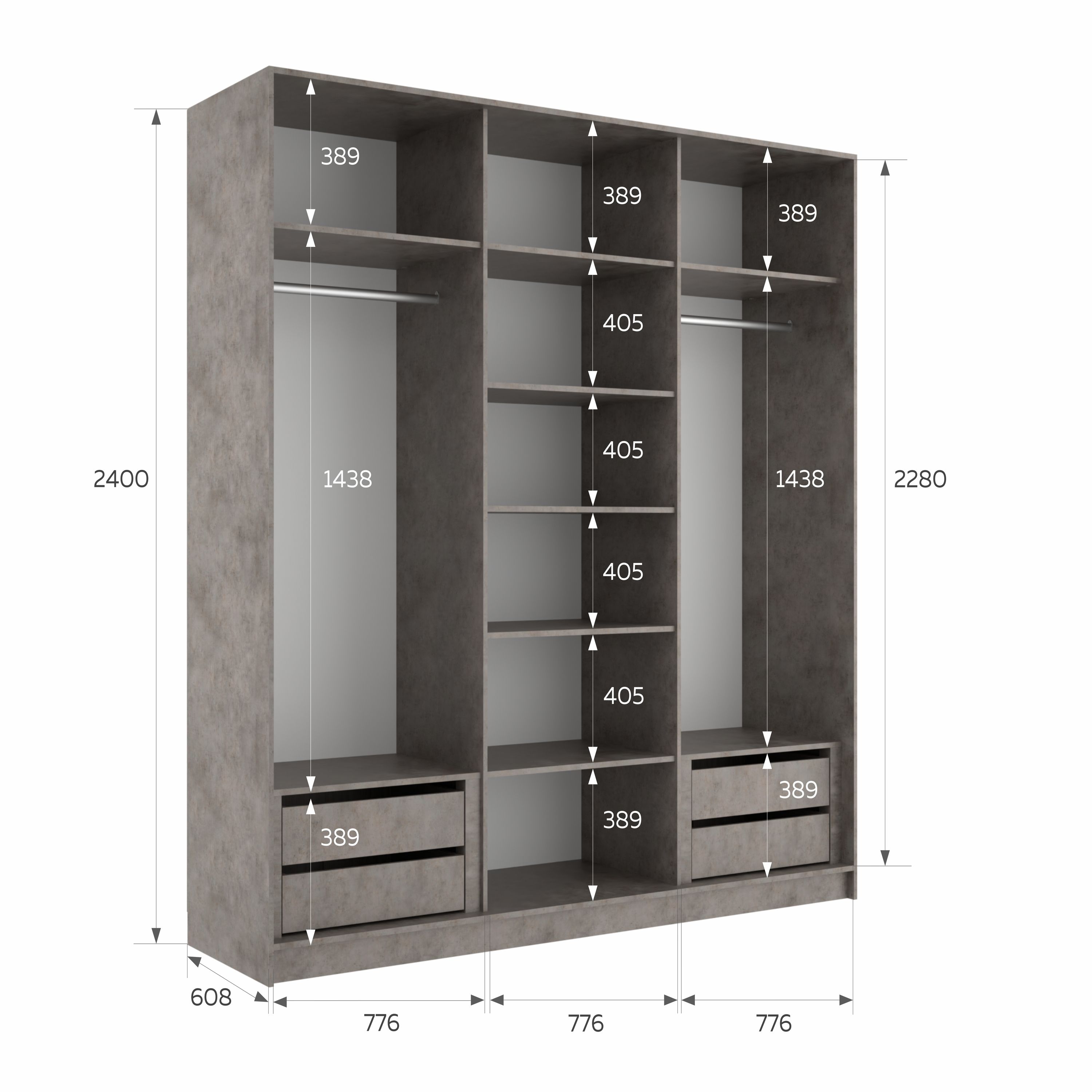 Отзывы о Столплит Шкаф-купе Эста ДСП+Зеркало+ДСП 240х66х240 Бетон серый