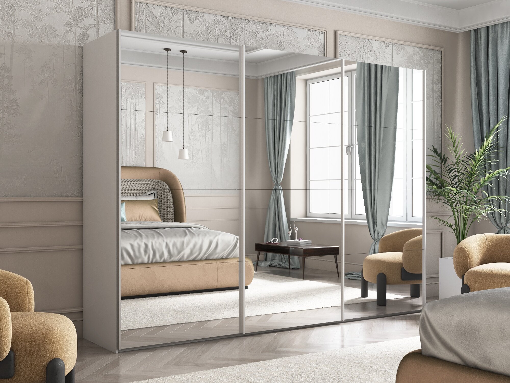 Отзывы о Столплит Шкаф-купе Эста Зеркало+Зеркало+Зеркало 300х66х240 Белый