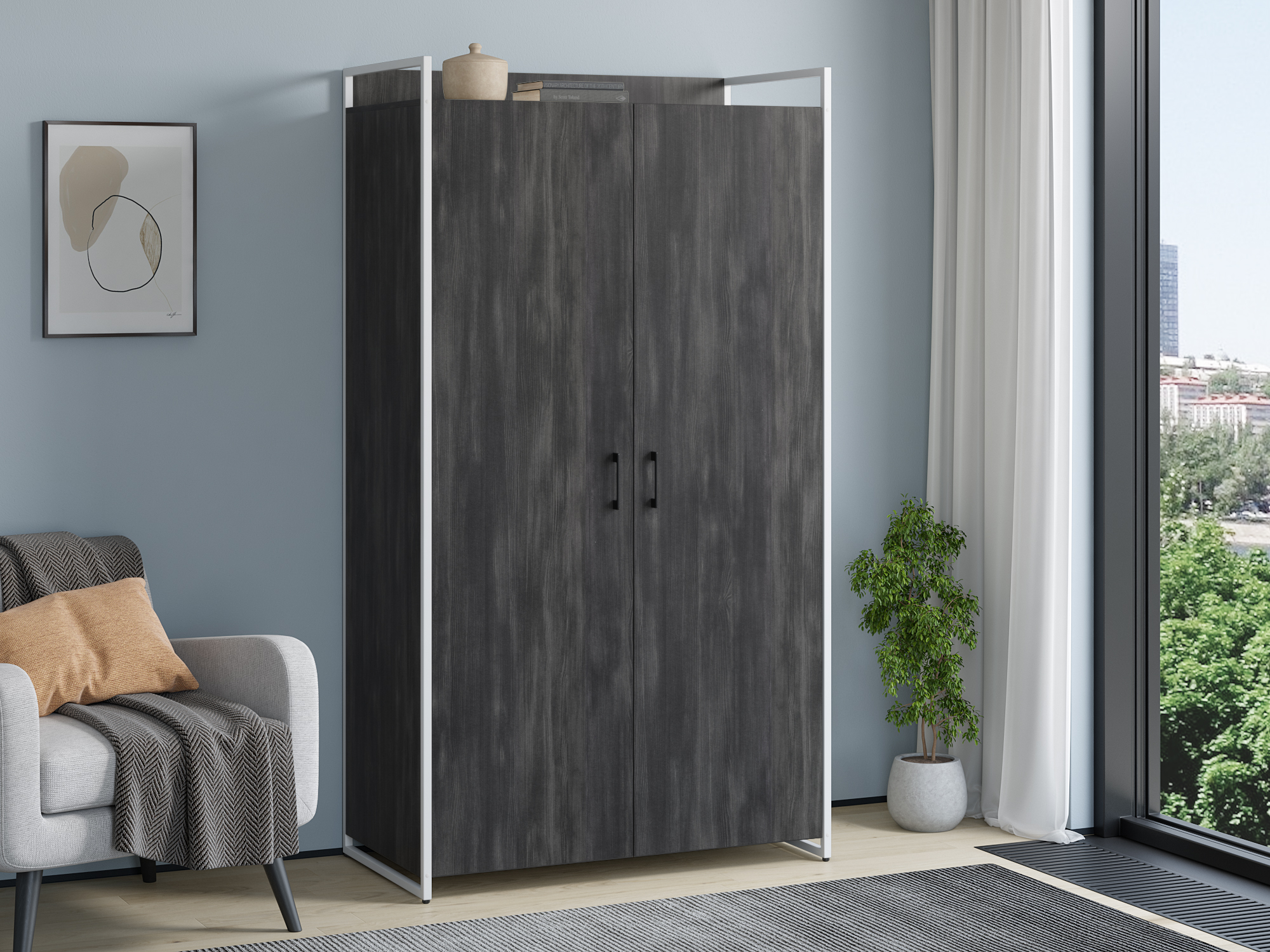 Шкаф из серии Urban Лофт для хранения верхней одежды. Включает в себя штангу для вешалок и две полки. Каркас выполнен из металлического профиля 20х20 мм, покрашенного порошковой краской. корпус из двери из ЛДСП 16 мм. Все изделия серии Urban Лофт отлично комбинируются друг с другом и идеально подойдут для гардеробной, прихожей или офиса.