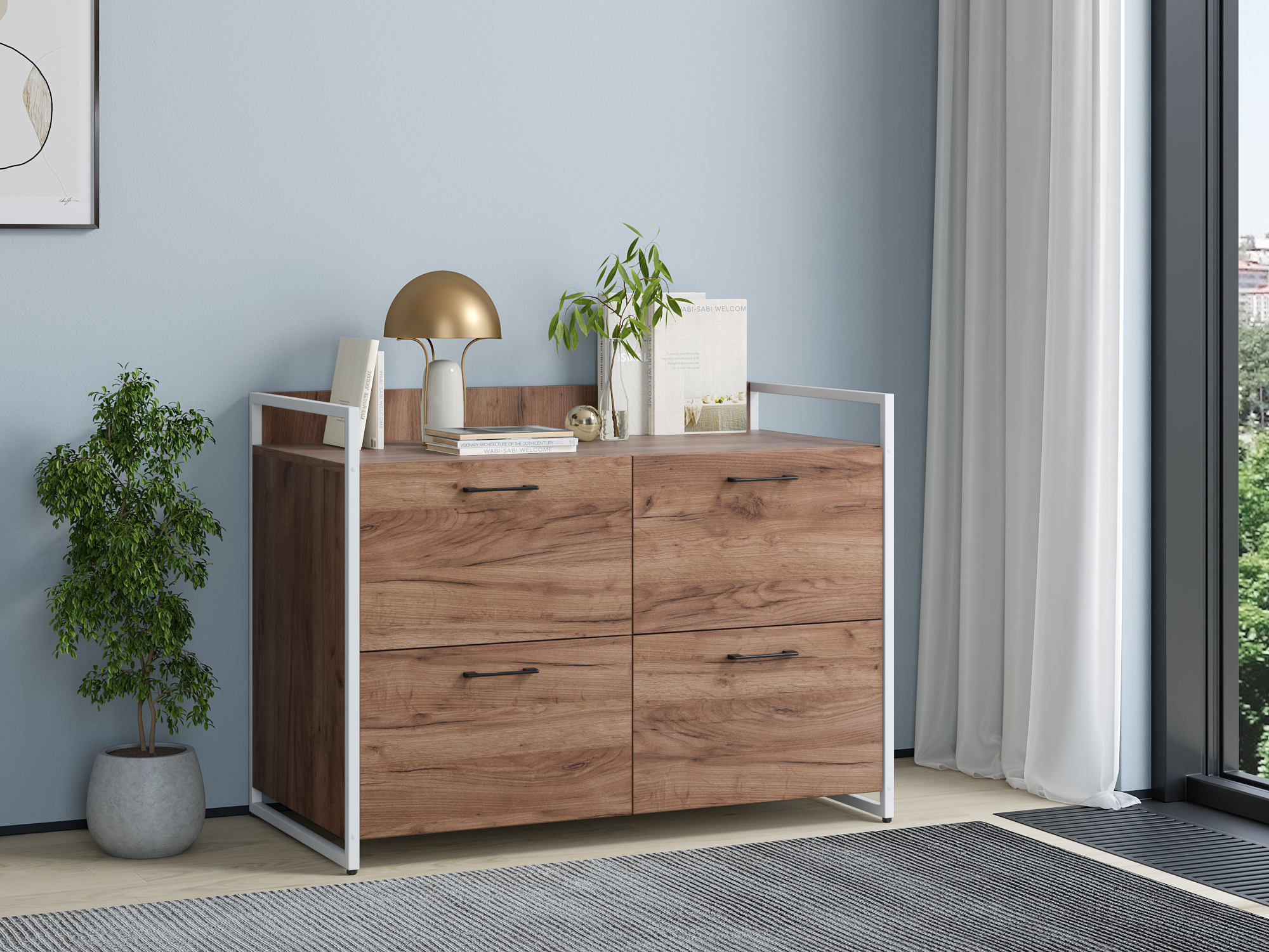 Комод из серии Urban Лофт для хранения. Модель имеет четыре выдвижных ящика на направляющих. Каркас выполнен из металлического профиля 20х20 мм, покрашенного порошковой краской. корпус и ящики из ЛДСП 16 мм. Все изделия серии Urban Лофт отлично комбинируются друг с другом и идеально подойдут для гардеробной, прихожей или офиса.