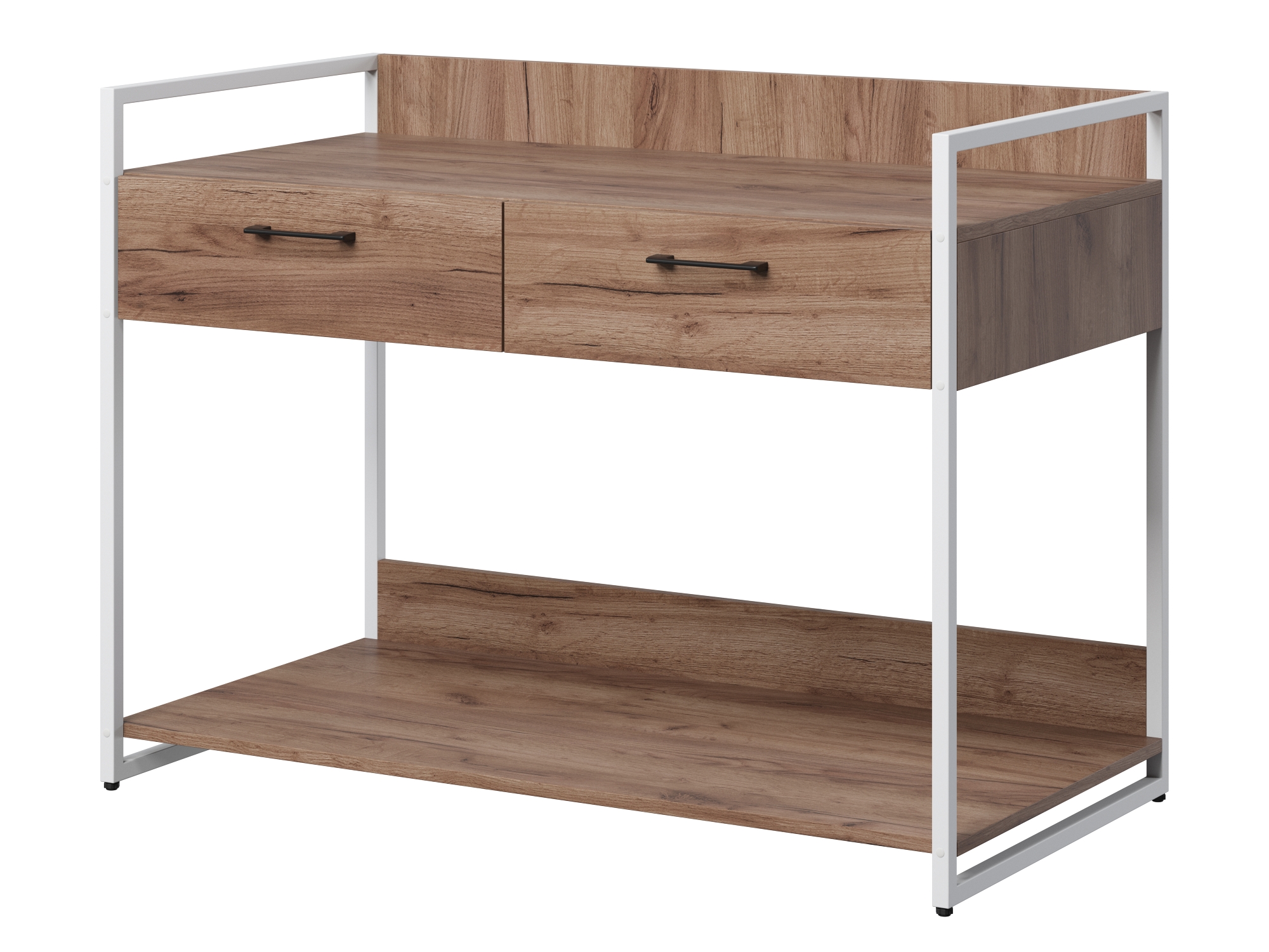 Консоль из серии Urban Лофт. Модель имеет два выдвижных ящика на направляющих и просторную нишу для хранения вещей. Каркас выполнен из металлического профиля 20х20 мм, покрашенного порошковой краской. корпус и ящики из ЛДСП 16 мм. Консоль отлично комбинируется с другими моделями из серии Urban.