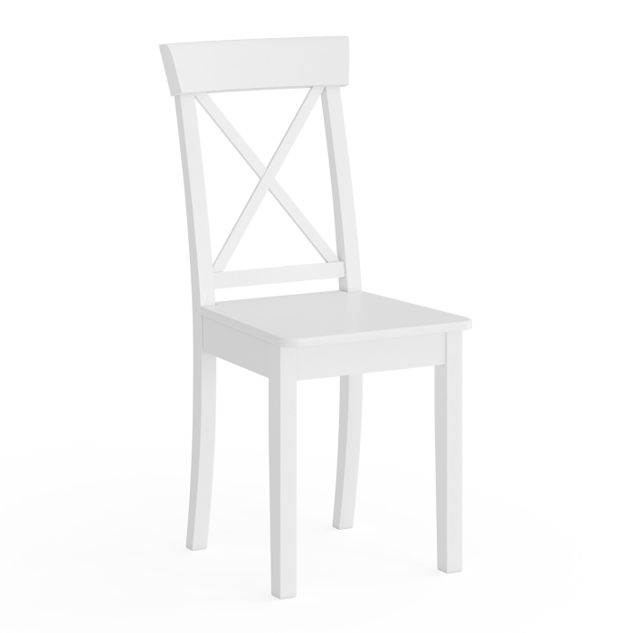 Этот стул станет удачным выбором для обеденной зоны, кухни или гостиной. Модель также гармонично впишется в интерьер прихожей или дачного дома. Каркас стула, включая спинку, выполнен из массива дерева, окрашенного в белый цвет. Качественная обработка древесины обеспечивает прочность конструкции и долгий срок службы. Центральная часть спинки оформлена перекрестными планками в виде буквы Х, благодаря чему стул смотрится стильно и воздушно. Широкая горизонтальная перекладина спинки визуально завершает конструкцию и подчёркивает лаконичный силуэт. Сиденье выполнено жёстким, что делает стул практичным и универсальным. Жёсткая поверхность удобна в уходе и устойчива к износу.