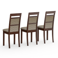 В набор входят 3 стула, которые идеально подойдут для небольшой кухни или компактной обеденной зоны. Стулья также станут удачным дополнением для гостиной или кабинета. Корпуса стульев Гольф-12 выполнены из массива дерева, окрашенного в оттенок венге. Качественная обработка древесины обеспечивает прочность конструкции и долгий срок службы. Спинки выполнены из массива берёзы с мягкими вставками, обтянутыми велюром. Высокая форма и лёгкий изгиб обеспечивают удобную опору для спины и комфорт при длительном сидении. Вставки спинок и обивки сидений выполнены из велюра капучино 25 — мягкого, приятного на ощупь и практичного. Ткань велюр устойчива к истиранию, легко чистится и выглядит стильно. Наполнение сидений стульев – гипоаллергенный, высокоэластичный пенополиуретан, создающий ровную, упругую поверхность.