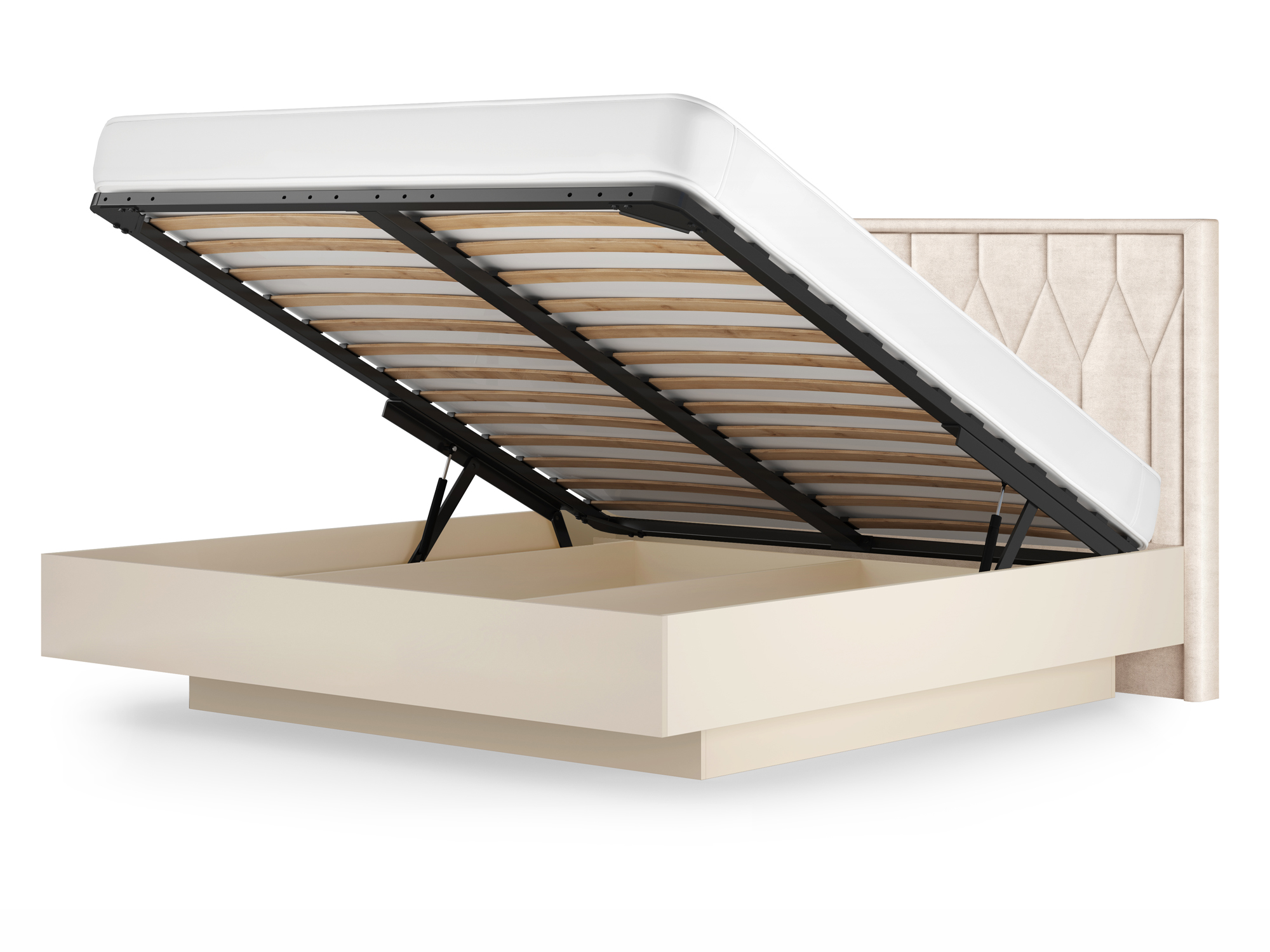Особенностью данной модели является наличие подъемного механизма и ортопедического основания. Это позволяет легко поднимать и опускать основание, а также обеспечивает правильное положение позвоночника во время сна.