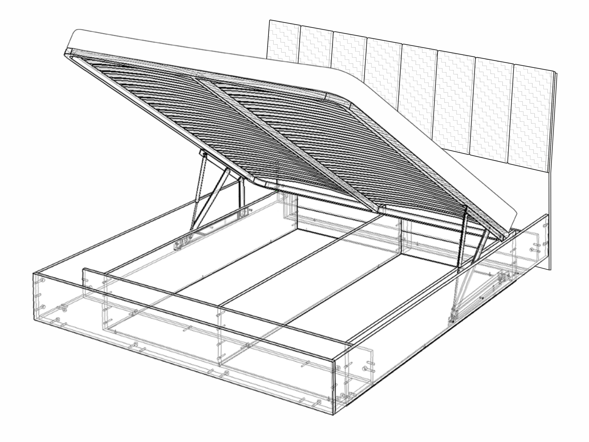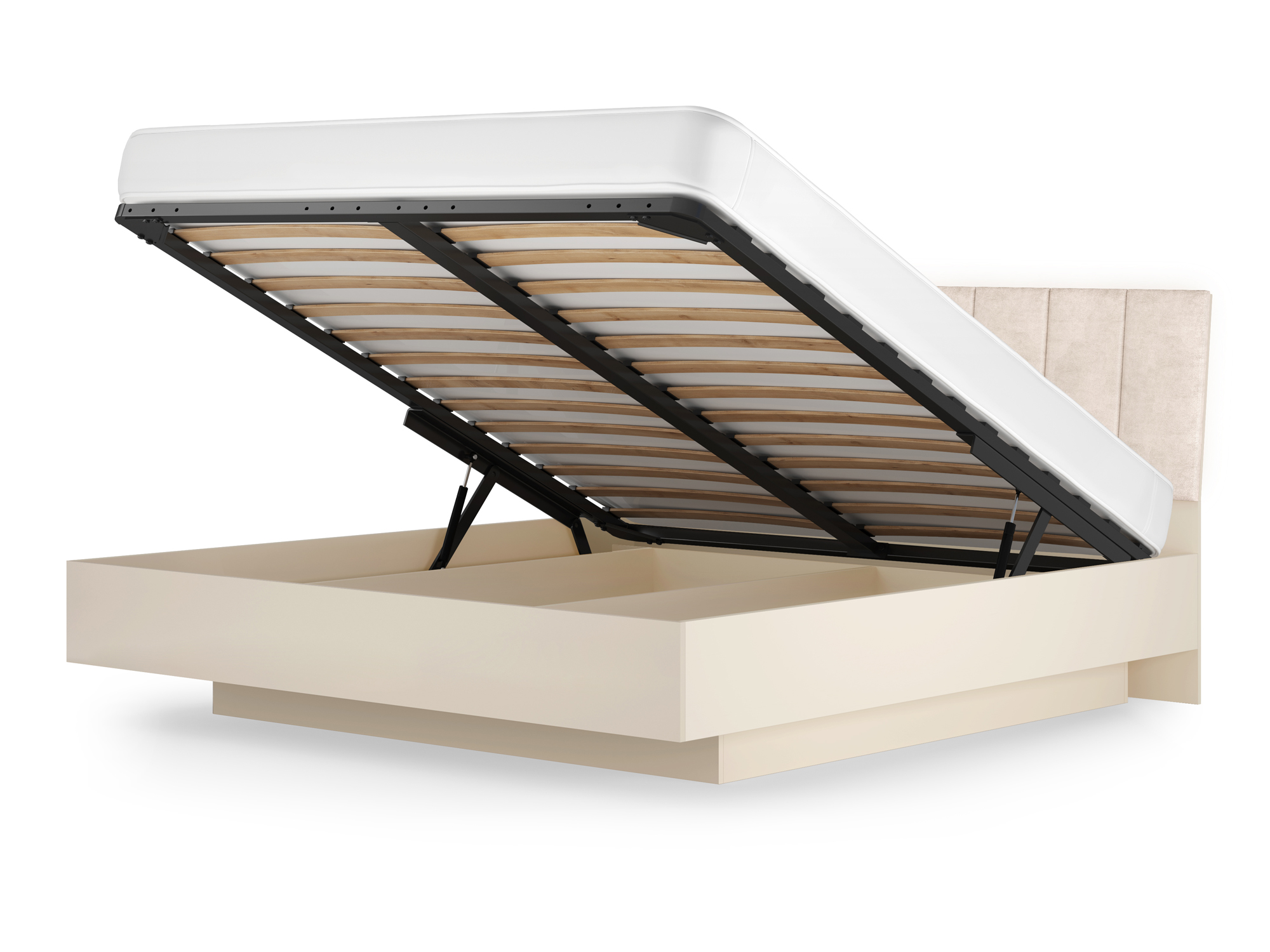 Кровать-7 с подъёмным основанием 1600 Капри от Кураж - это двуспальная кровать, которая сочетает в себе комфорт и стиль.