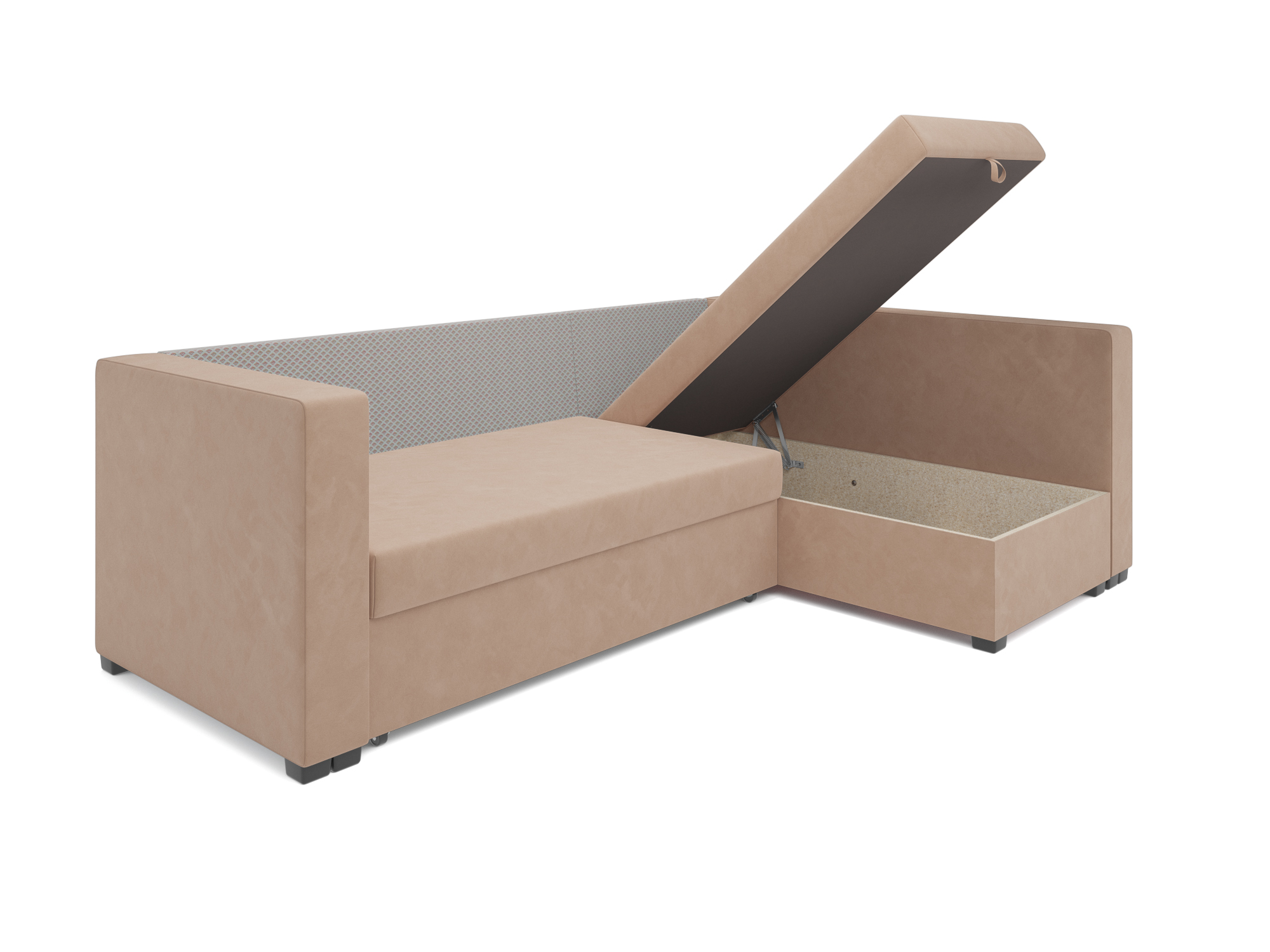 Удобство использования дивана «Мансберг» дополняется ящиком для хранения, который расположен внутри угловой части. В него можно положить небольшие вещи или постельные принадлежности, сохраняя порядок и экономя пространство.