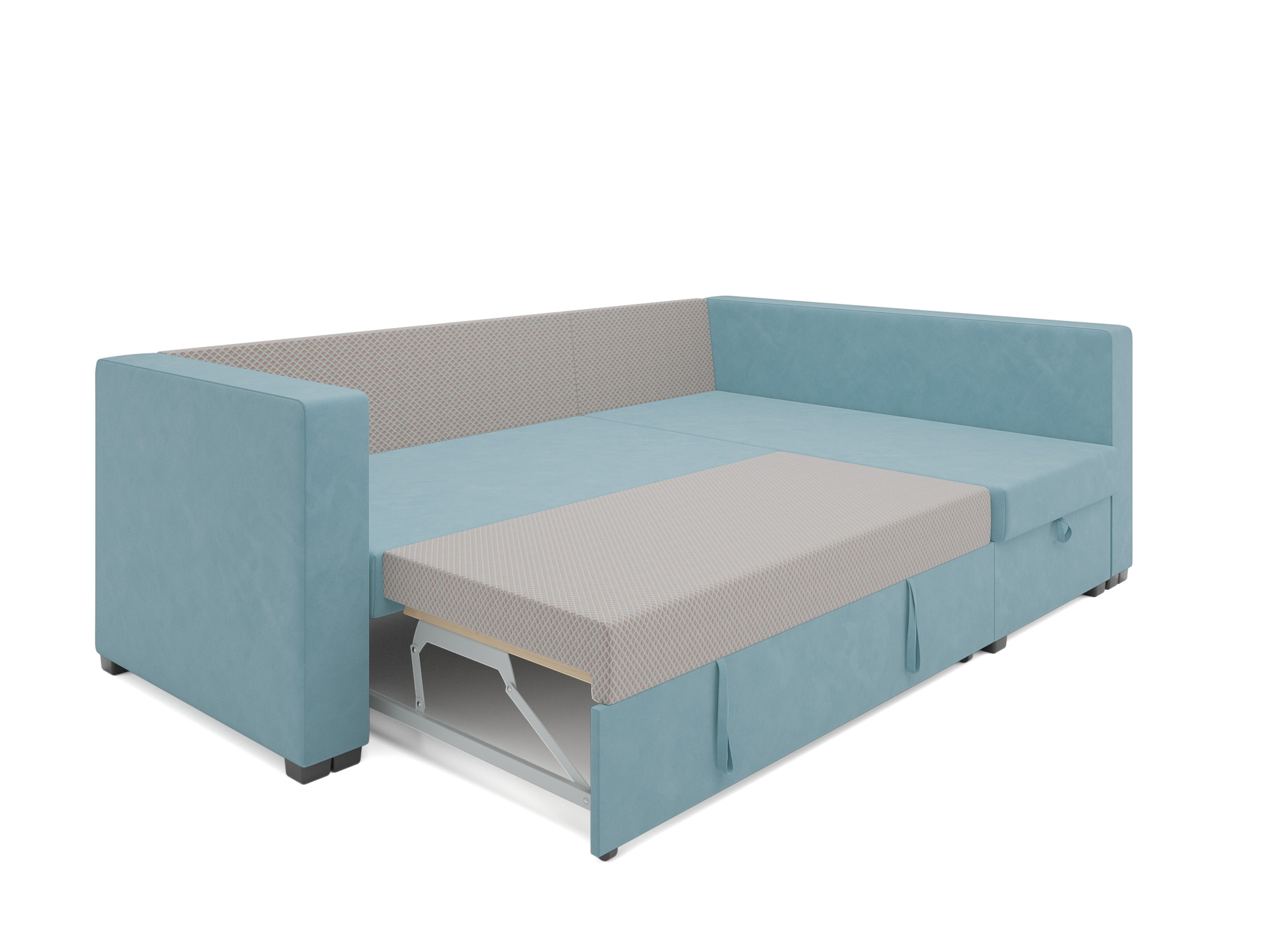 Если ваши друзья решат остаться на ночь, разобрать угловой диван «Мансберг» не составит труда. Благодаря механизму «дельфин», процесс трансформации в комфортную кровать происходит легко и быстро. Просто потяните за ремешок и поднимите наружу скрытую часть дивана, и теперь у вас есть дополнительное спальное место.