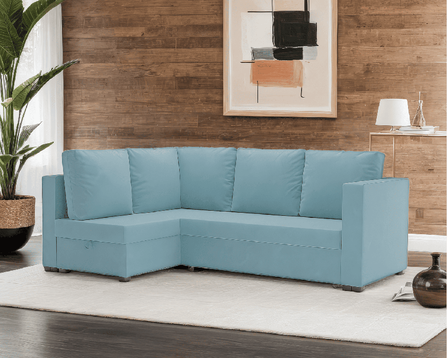 Удобство использования дивана «Мансберг» дополняется ящиком для хранения, который расположен внутри угловой части. В него можно положить небольшие вещи или постельные принадлежности, сохраняя порядок и экономя пространство.