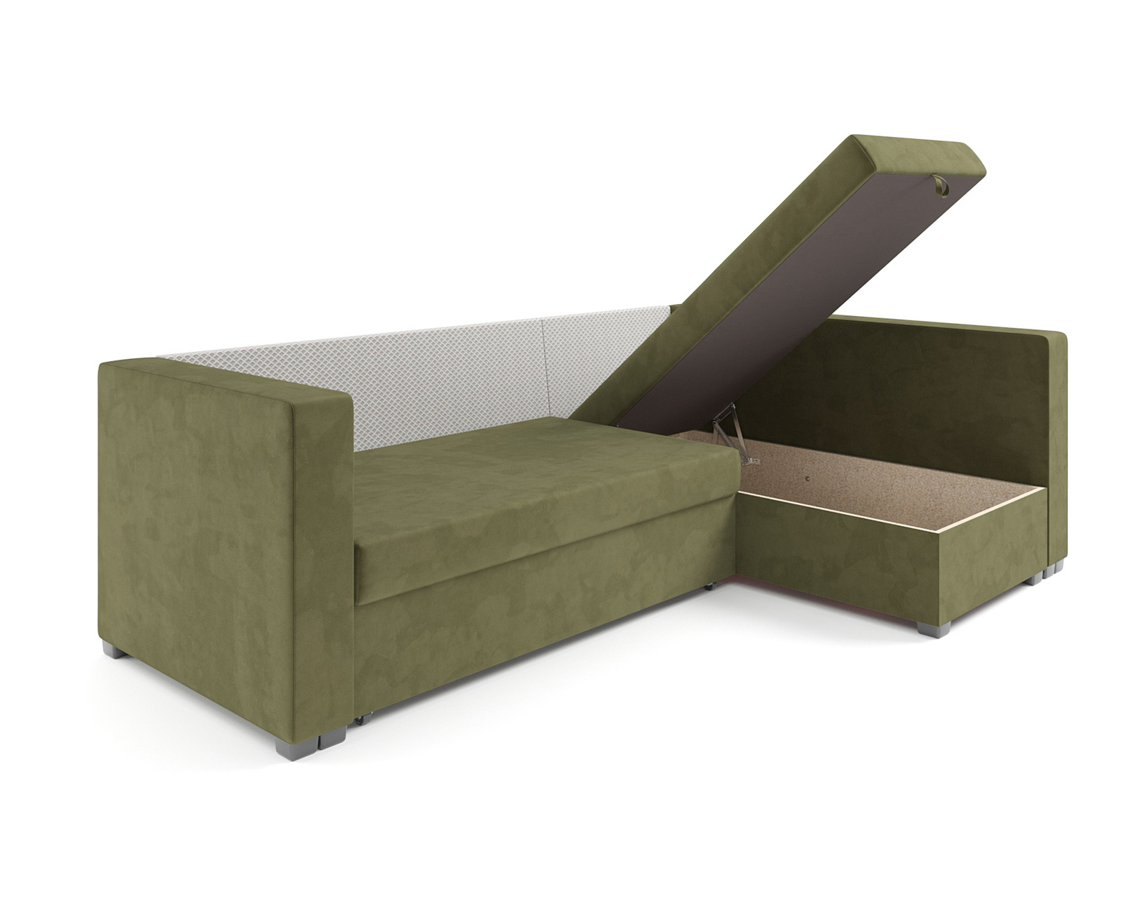 Удобство использования дивана «Мансберг» дополняется ящиком для хранения, который расположен внутри угловой части. В него можно положить небольшие вещи или постельные принадлежности, сохраняя порядок и экономя пространство.