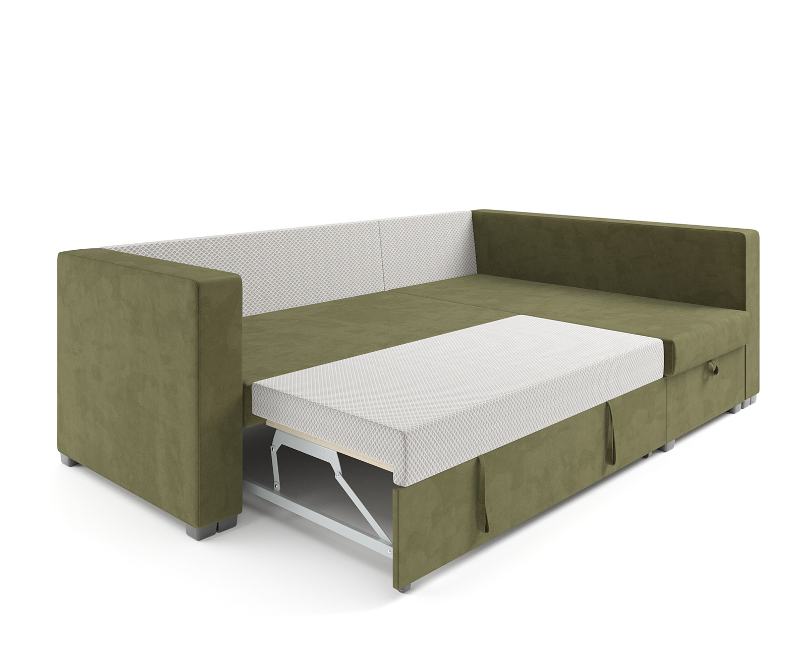 Если ваши друзья решат остаться на ночь, разобрать угловой диван «Мансберг» не составит труда. Благодаря механизму «дельфин», процесс трансформации в комфортную кровать происходит легко и быстро. Просто потяните за ремешок и поднимите наружу скрытую часть дивана, и теперь у вас есть дополнительное спальное место.