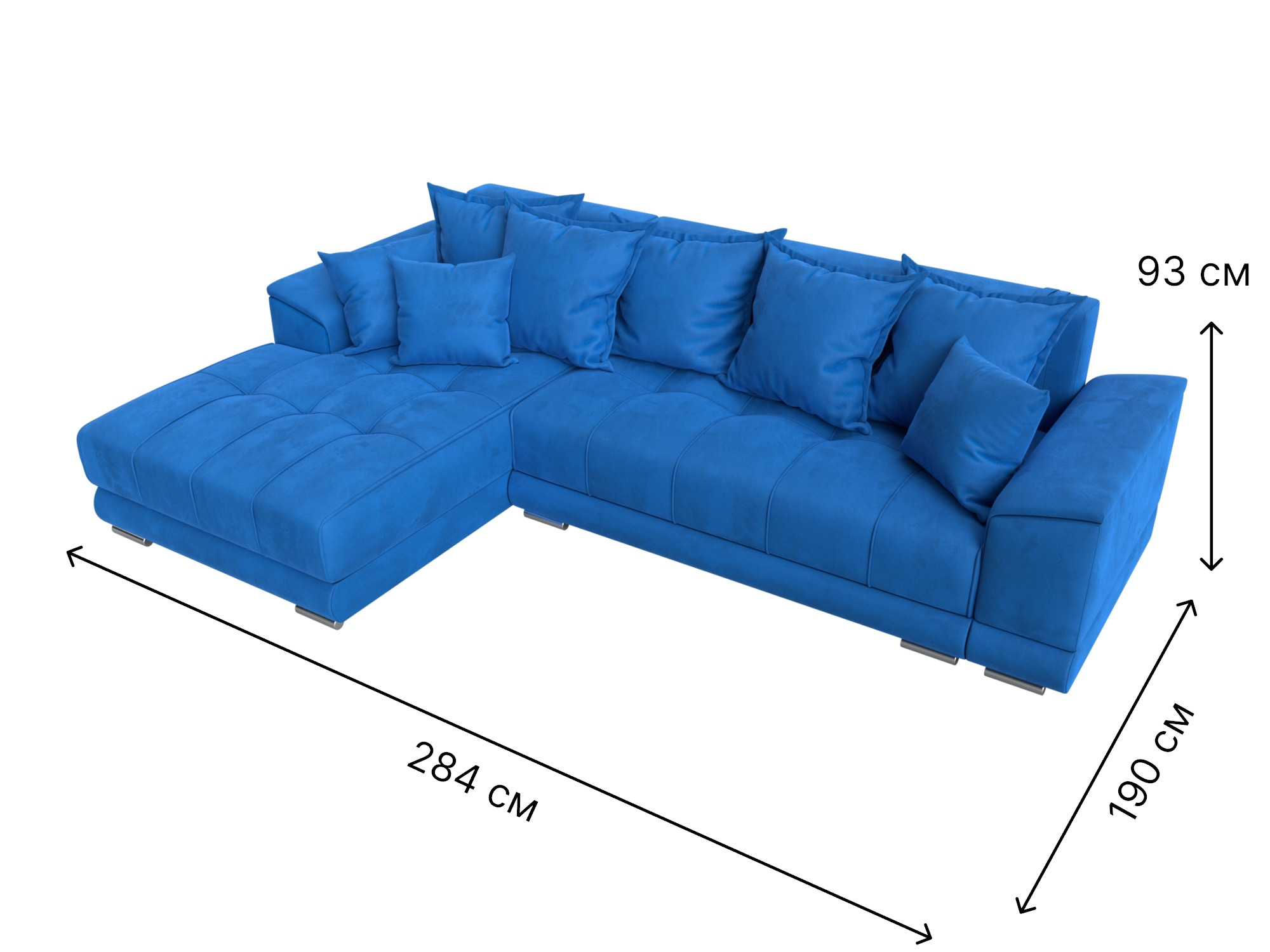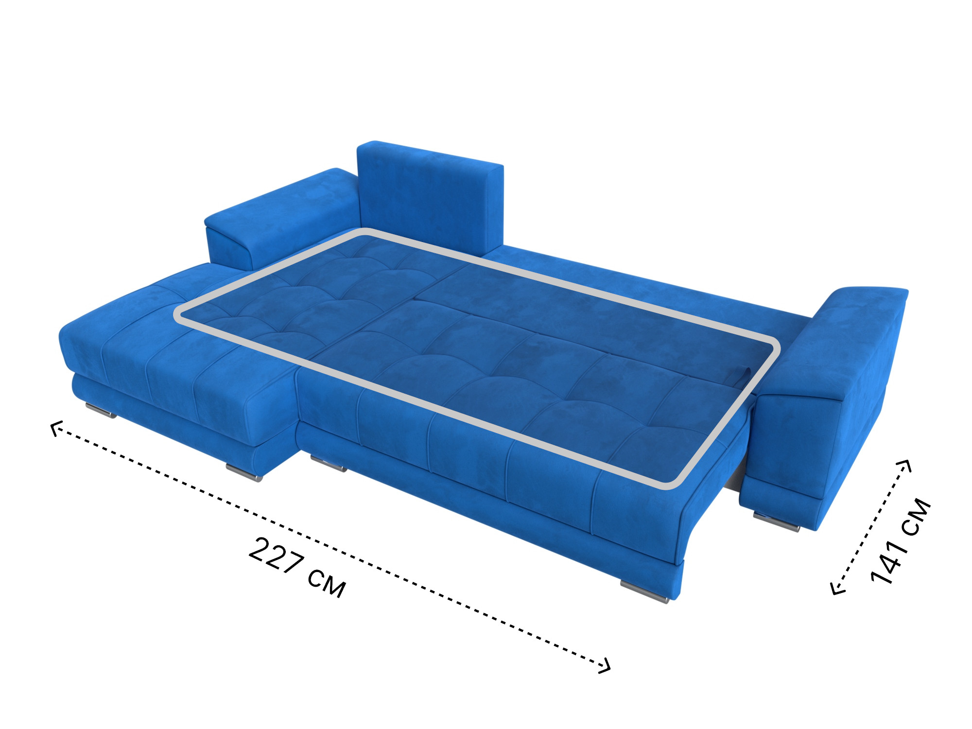 При габаритах: 284x190x93 см подойдет для большой семьи или дружной компании, легко раскладывается, обеспечивая спальное место 141x227 см.