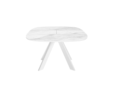 Стол с керамической столешницей - смотрится элегантно за счет тонких линий в конструкции подстолья и столешницы.