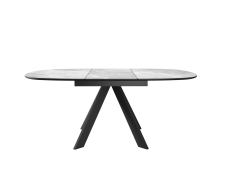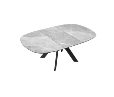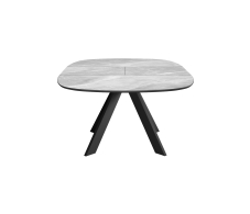 Стол с керамической столешницей - смотрится элегантно за счет тонких линий в конструкции подстолья и столешницы.
