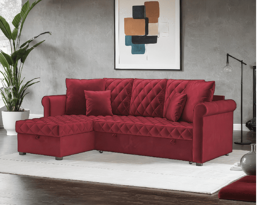 Удобство использования дивана «Берлин» дополняется ящиком для хранения, который расположен внутри угловой части. В него можно положить небольшие вещи или постельные принадлежности, сохраняя порядок и экономя пространство.